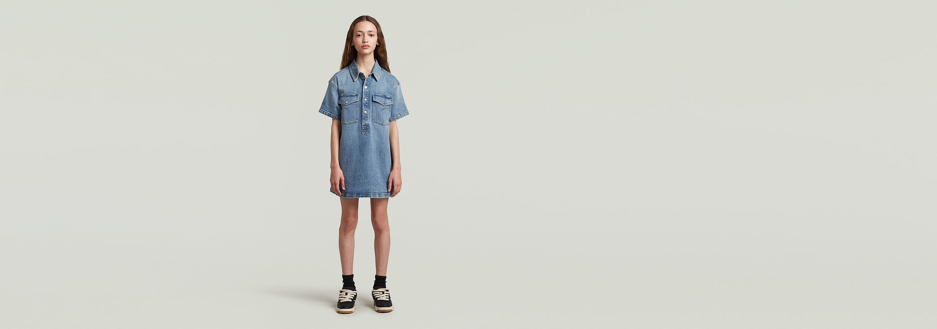 Dress Shirt Collar Denim is designed in a loose fit.