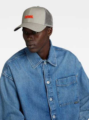 This RAW Embro Baseball trucker cap is designed with two different fabrics. A structured woven fabric is combined with an open mesh that creates air flow. The front features a raised graphic embroidery. The back strap will allow you to personalize the fit to your preferences.