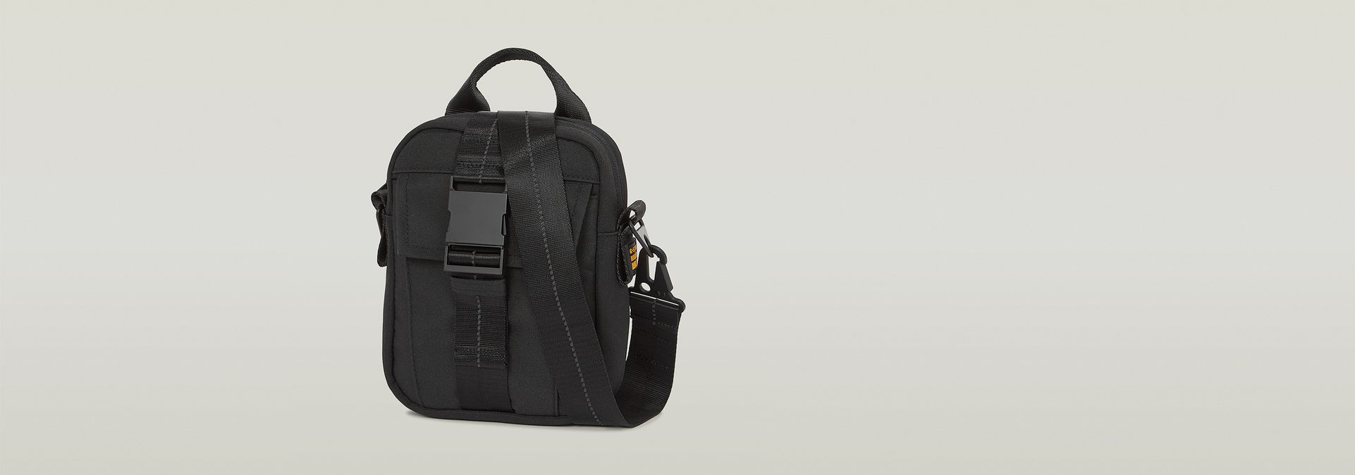 - Flap pocket, clip-on buckle closure, cardholder inside