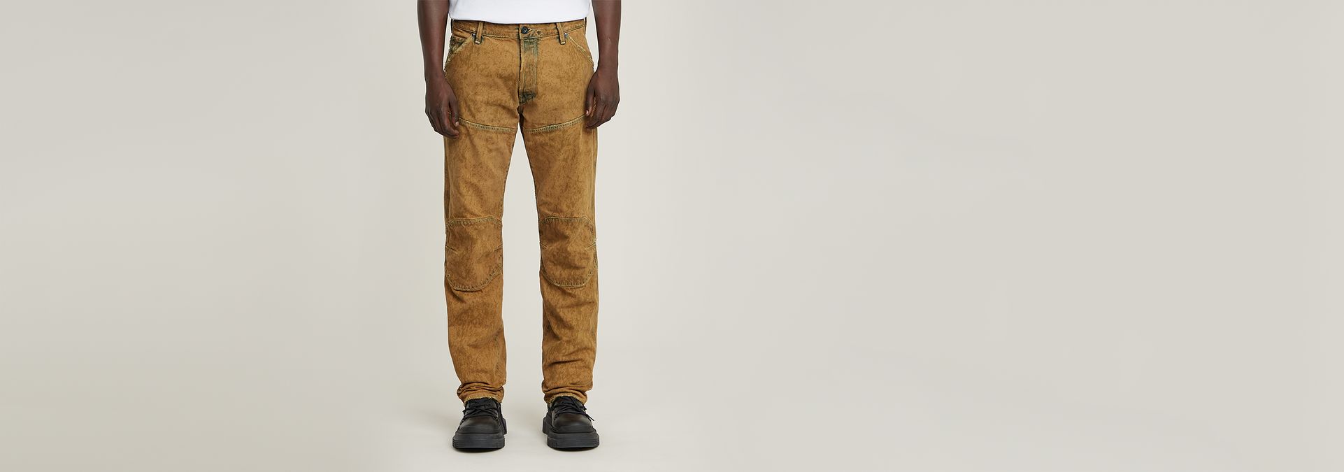 First introduced in 1996, the pioneering design of the G-STAR Elwood has been reinvented in a regular straight fit. Iconic features such as diagonal seams across the thighs, knee pads, and heel guards showcase our signature anatomical construction, providing enhanced movement.