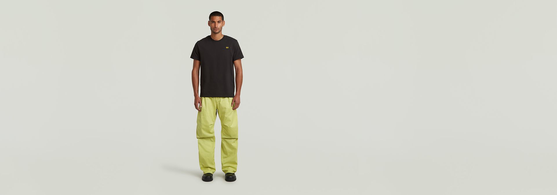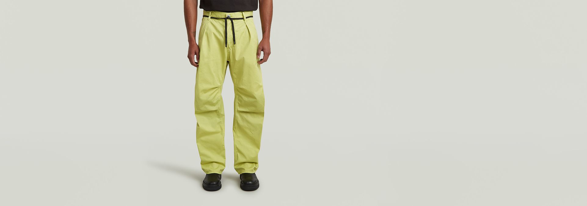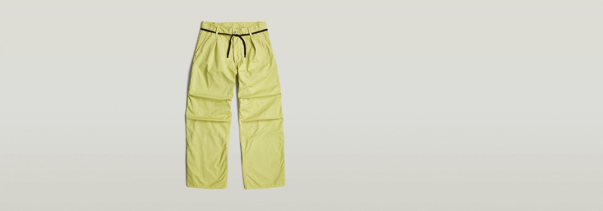 The Pleated 3D Denim Pant offers a loose fit with a mid waist.
