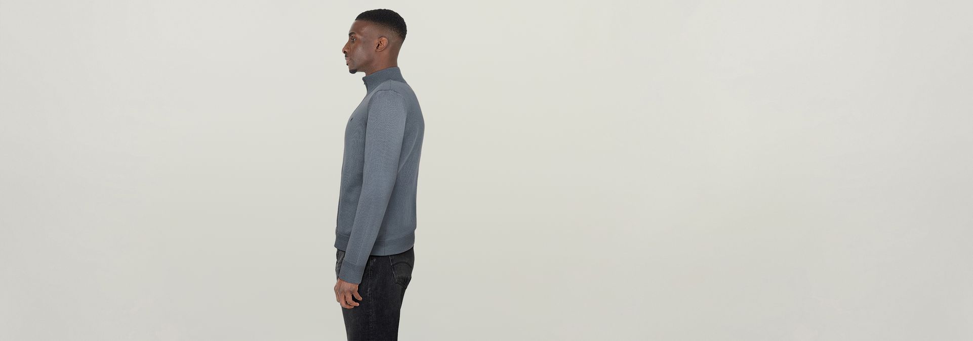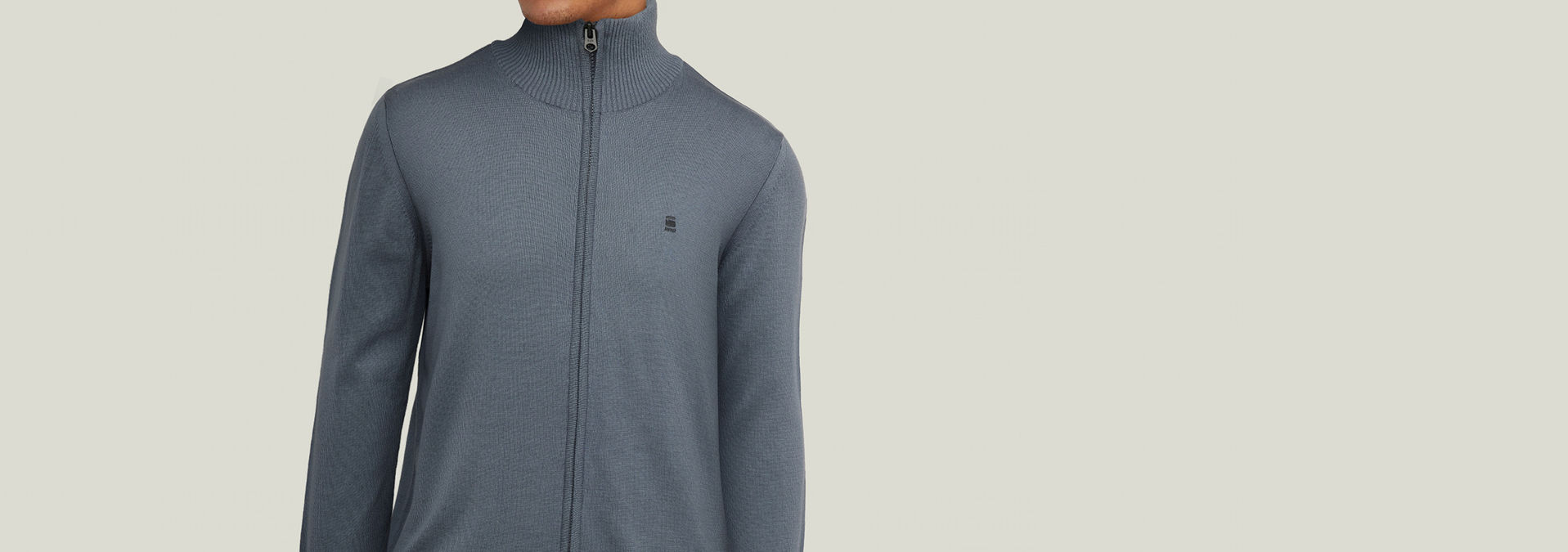 Zip through sweater Core offers a raised collar and a straight fit. Either wear it fully closed as a top or combine it with a tee and wear it as a cardigan.