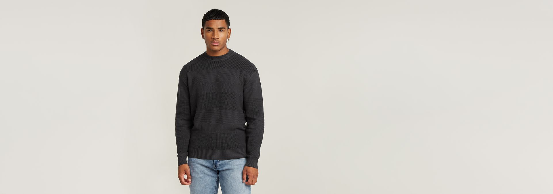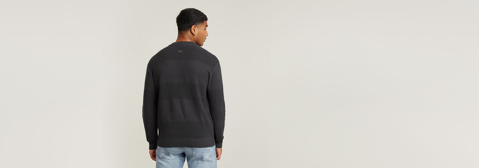 Knitted sweater Structure features a straight fit with a round neck. A different knit structure creates a striped design. The ribbed edges add to a comfortable fit.