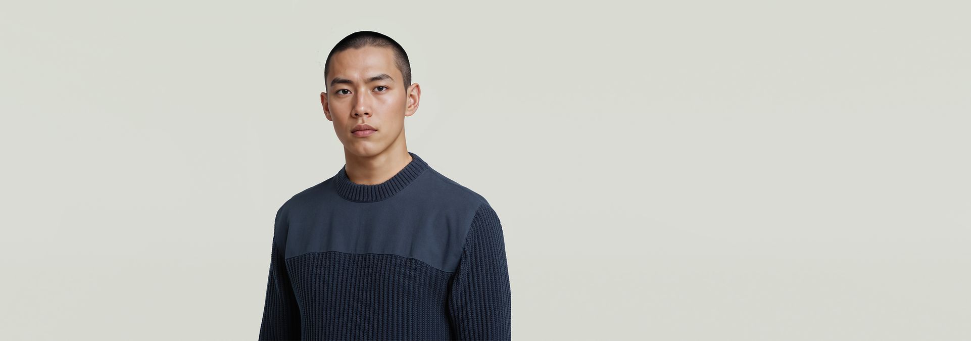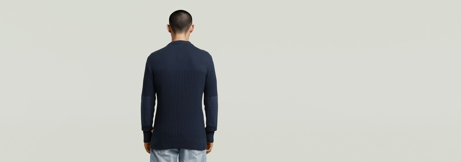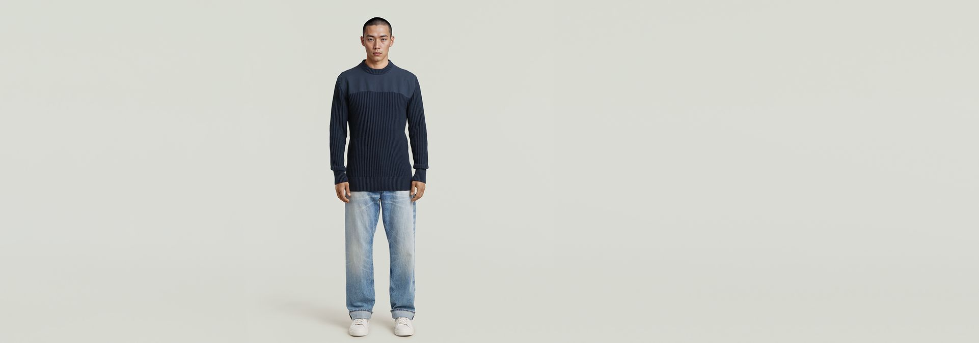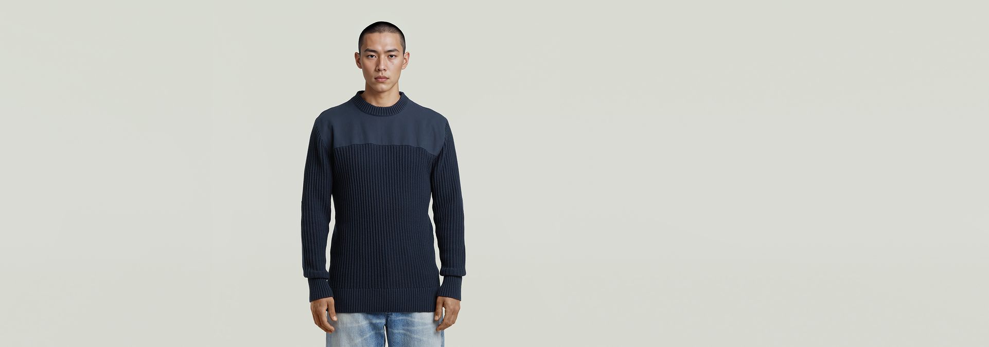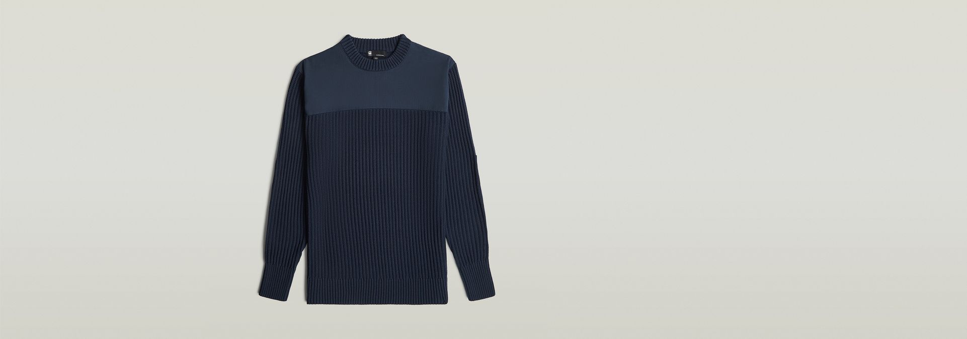 The Army Knit features a classic ribbed design with a regular fit, round neck, and long sleeves.