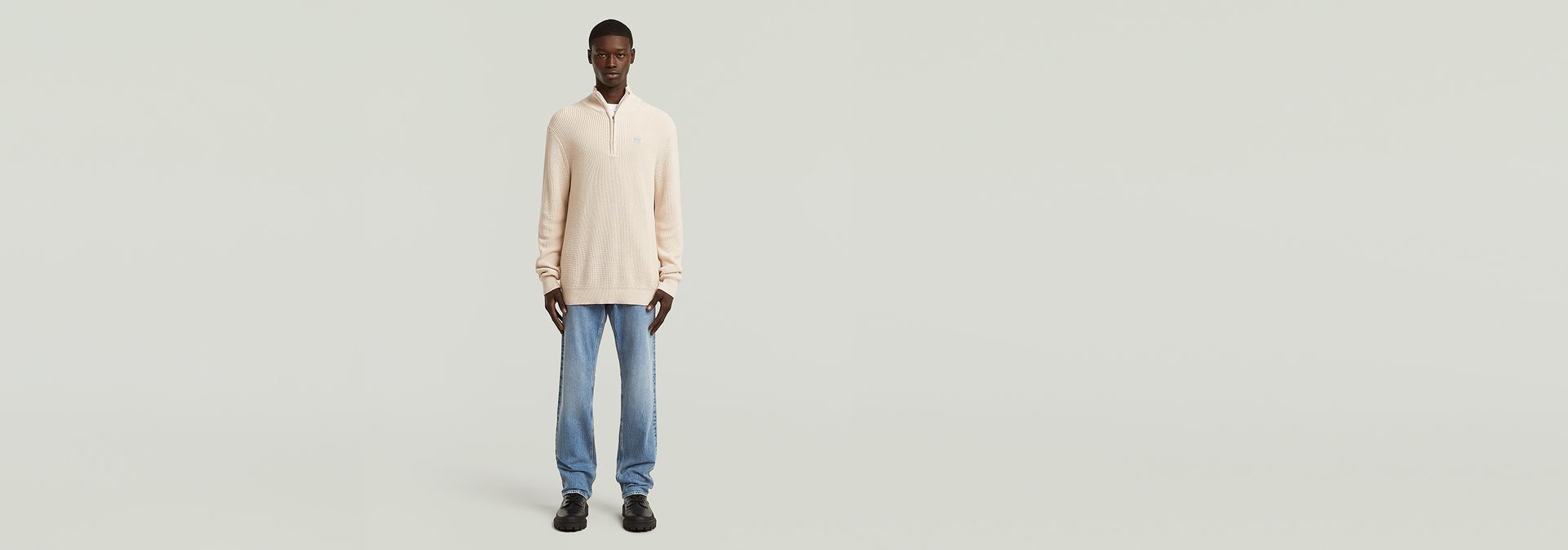 The Pullover Half Zip Knit combines a classic design with a practical half-zip closure for versatile wear. Its regular fit and long sleeves make it a timeless addition to any wardrobe.