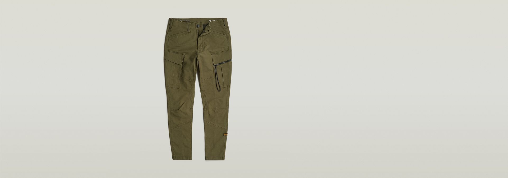 Cargo pant 2.0 Zip Pocket 3D is designed in a skinny fit and offers inset pockets with a welt finish. One of the thigh pockets has an additional zipper pocket with an extended pull cord. Flap pockets at the back are finished with a hidden snap button.
