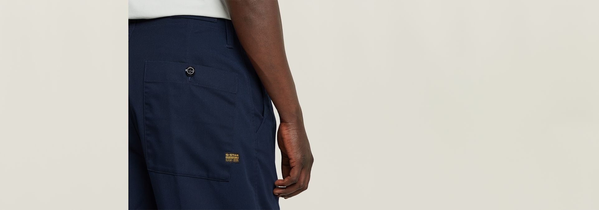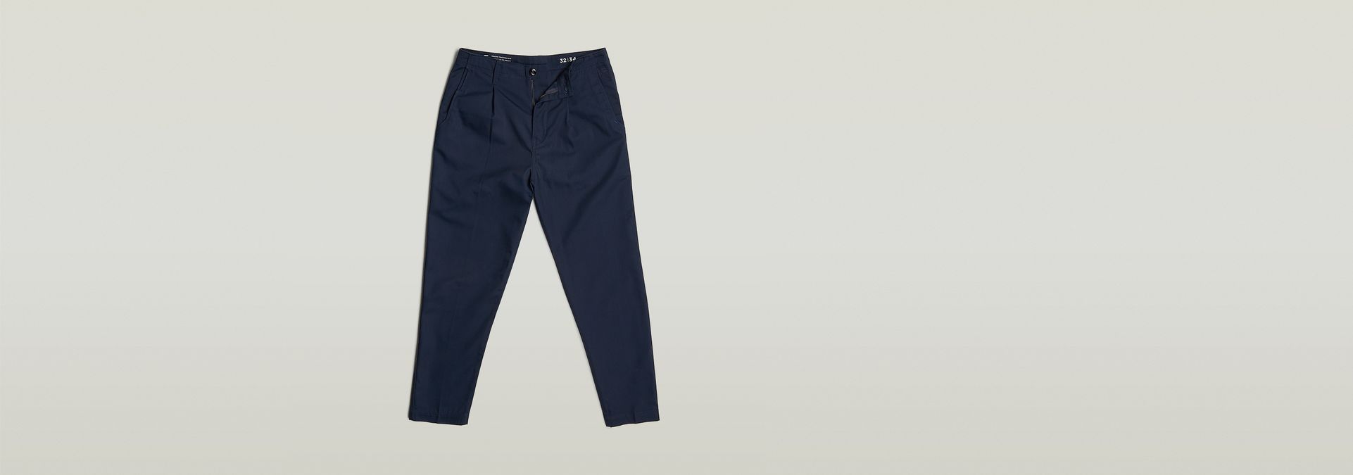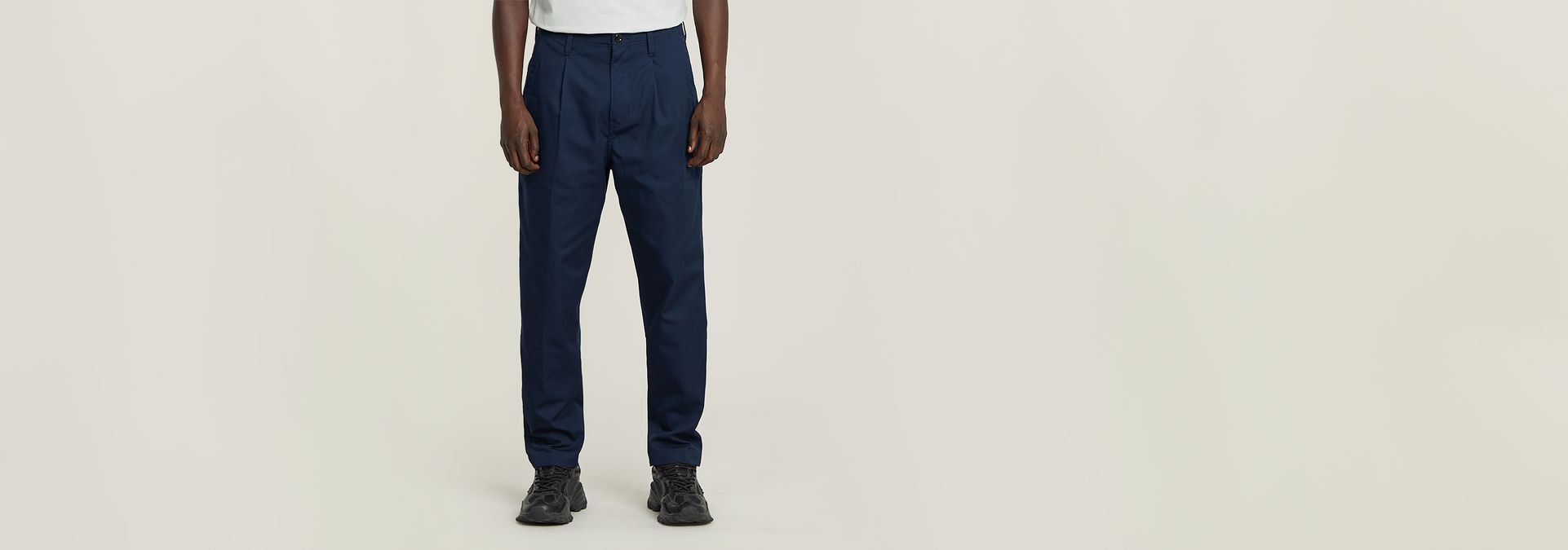 Pleated Chino Relaxed offers pleats at the front to enhance the relaxed fit. The coin pocket is integrated in the pocket insert. Back pockets are finished with a button closure.