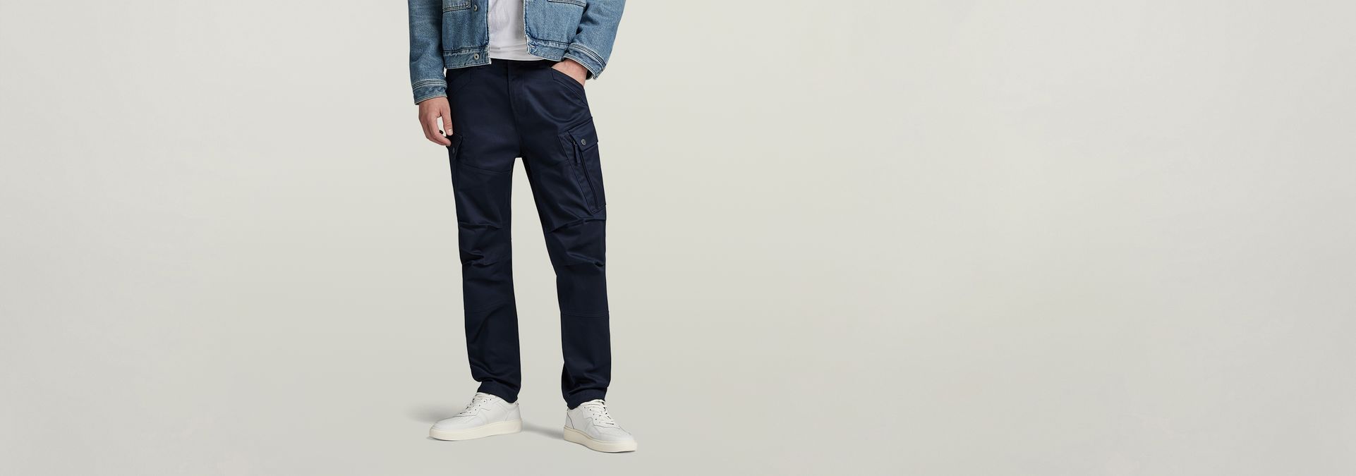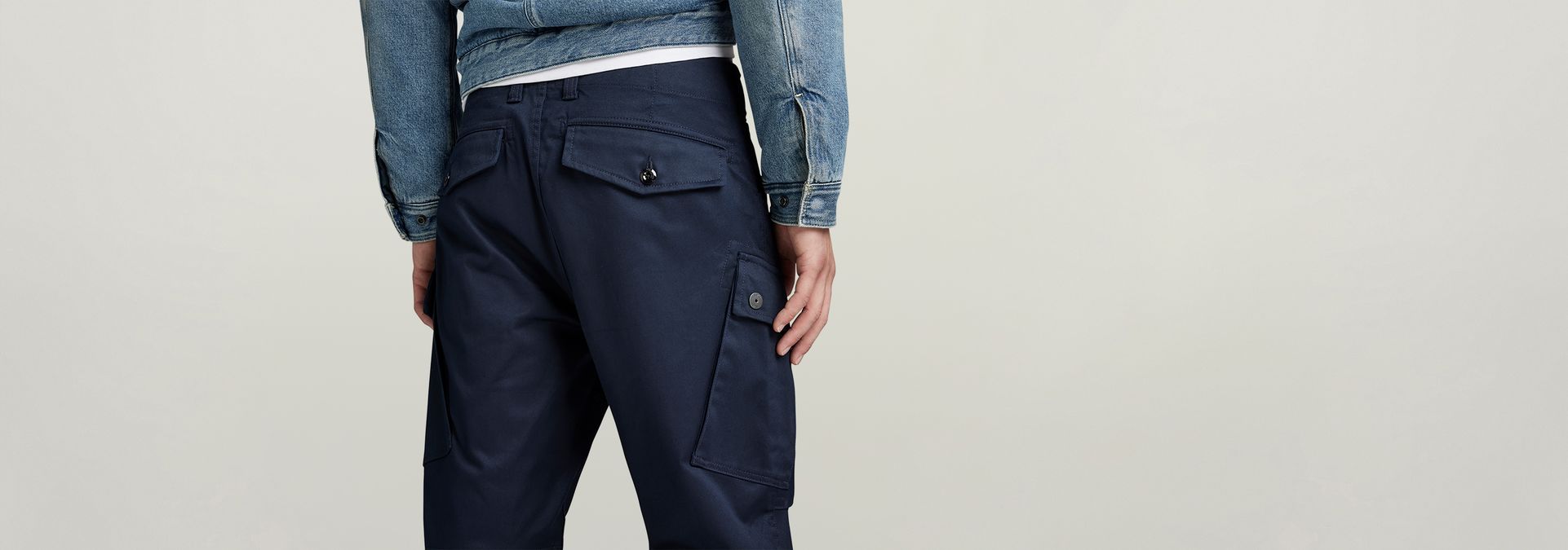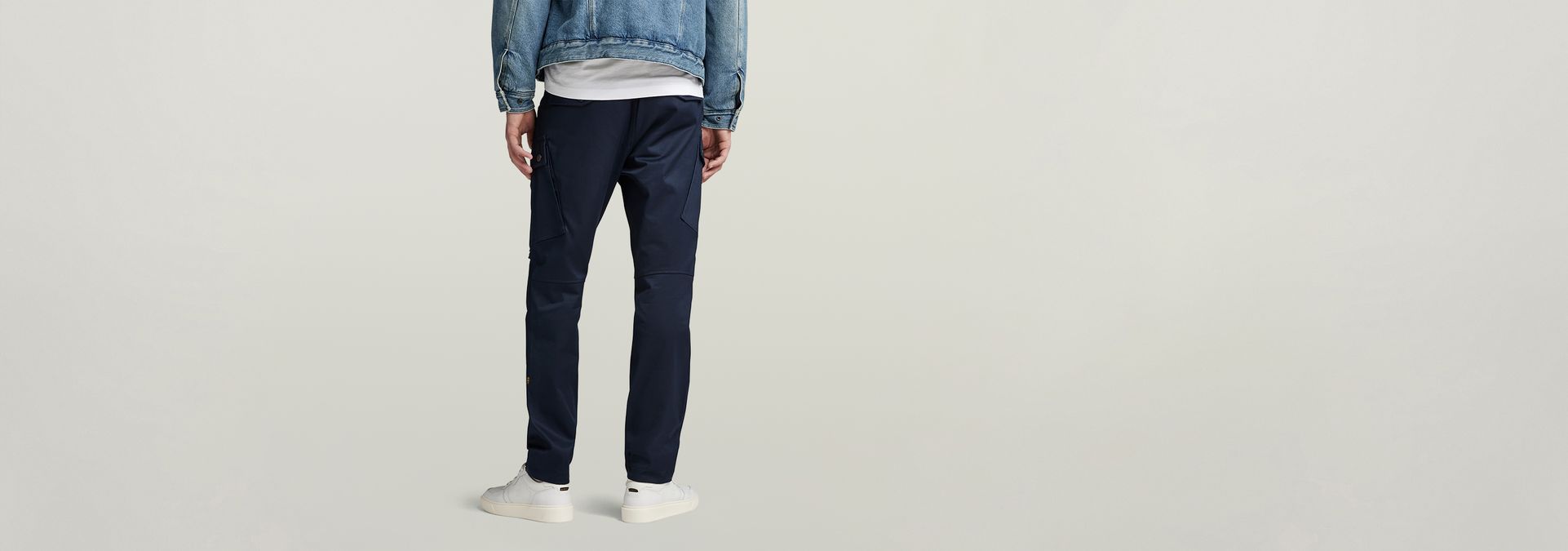 These cargo pants offer flap pockets at the thigh with a zipper along one side. A coin pocket is added to the inset pockets and at the back flap pockets are created. Pull the tape on the inside leg for a tighter fit around the ankle.