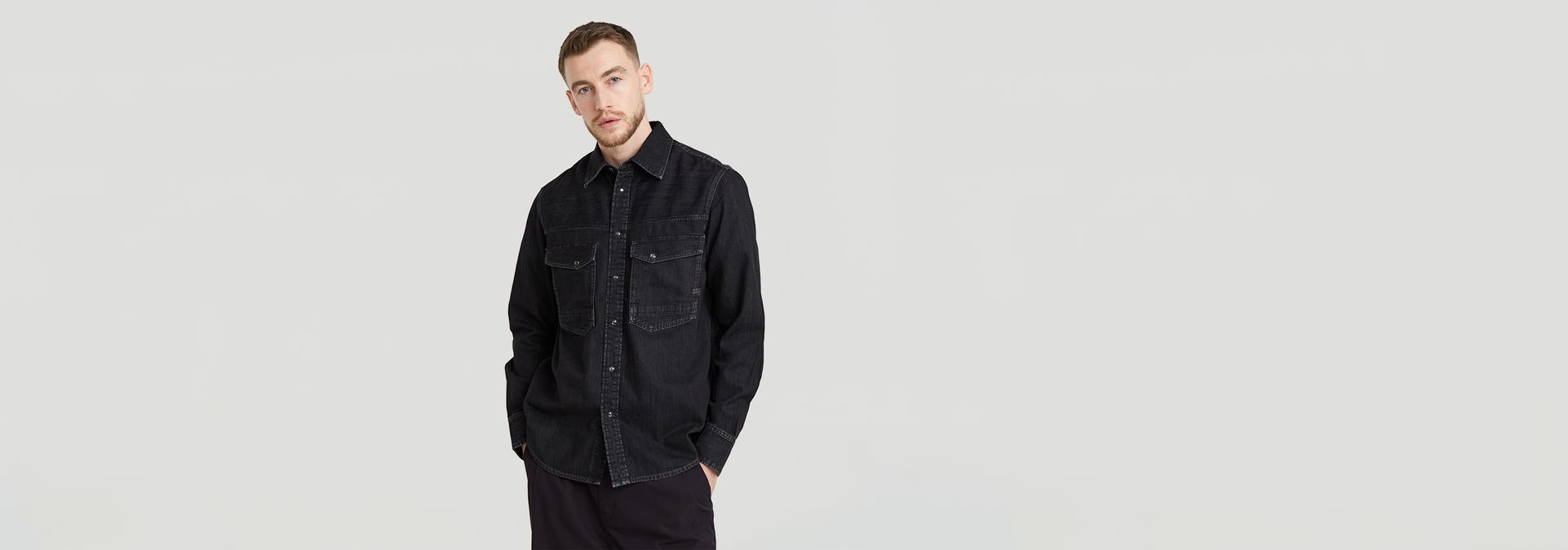 Shirt Dakota offers a slim fit with a snap button closure. Deep front pockets are finished with a flap and snap button. A slightly curved hem completes it.