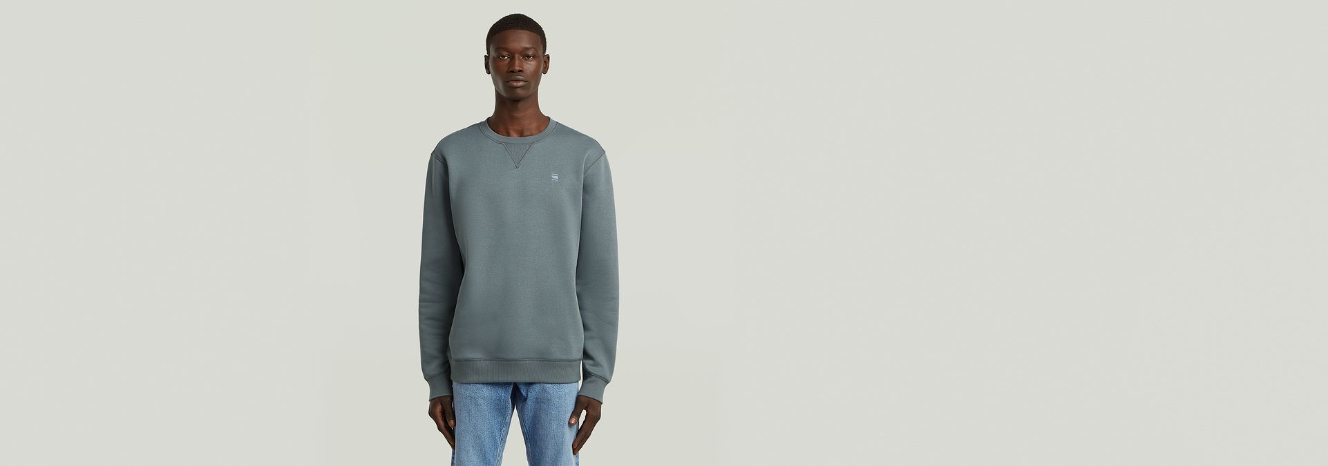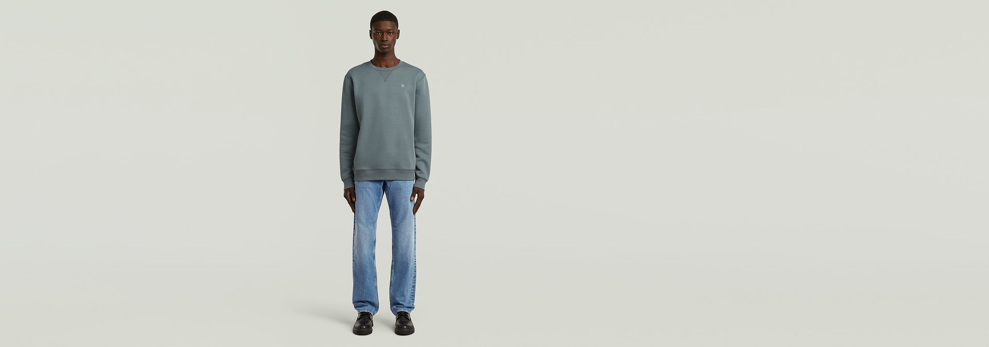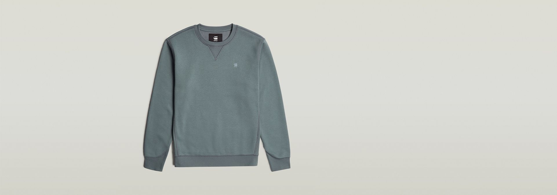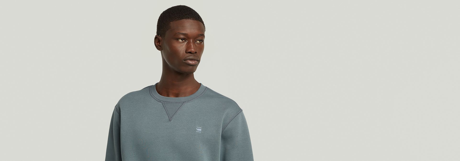 The Premium Core sweater is designed in a straight fit with a rounded neckline and a triangle inset piece. Also the side panels, cuffs and waist are created out of a ribbed knit. The long sleeves are cut rounded at the wrist, showing a higher cuff. A subtle branding is added to the chest and at the side seam.