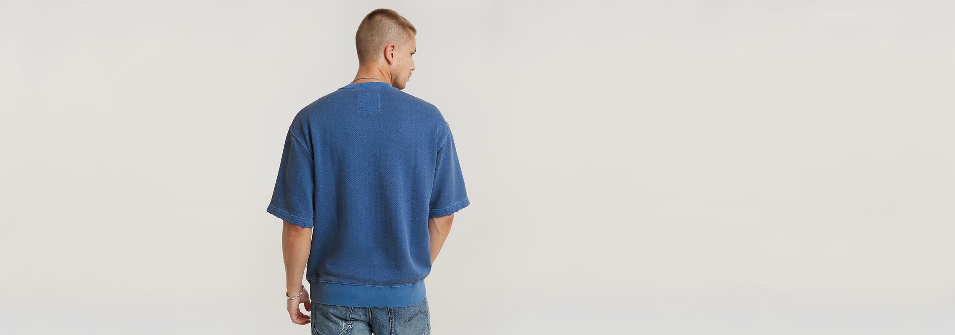 Short sleeve sweater Overdyed is cut in a relaxed fit and offers a ribbed finish with wear marks.