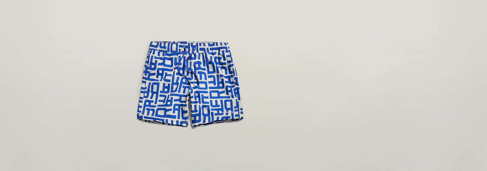This version of the Dirik swim short features an allover graphic printed design. The stretchable waistband offers an incorporated drawcord. Side seam pockets and a single back pocket complete it. Inside, a mesh lining adds support.