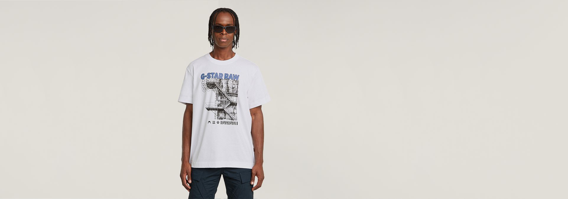 The Stairs Graphic Loose T-Shirt features a graphic print and a relaxed fit.