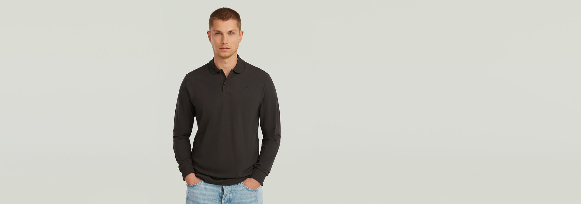 The Dunda slim polo long sleeve features a classic polo collar and button closure.