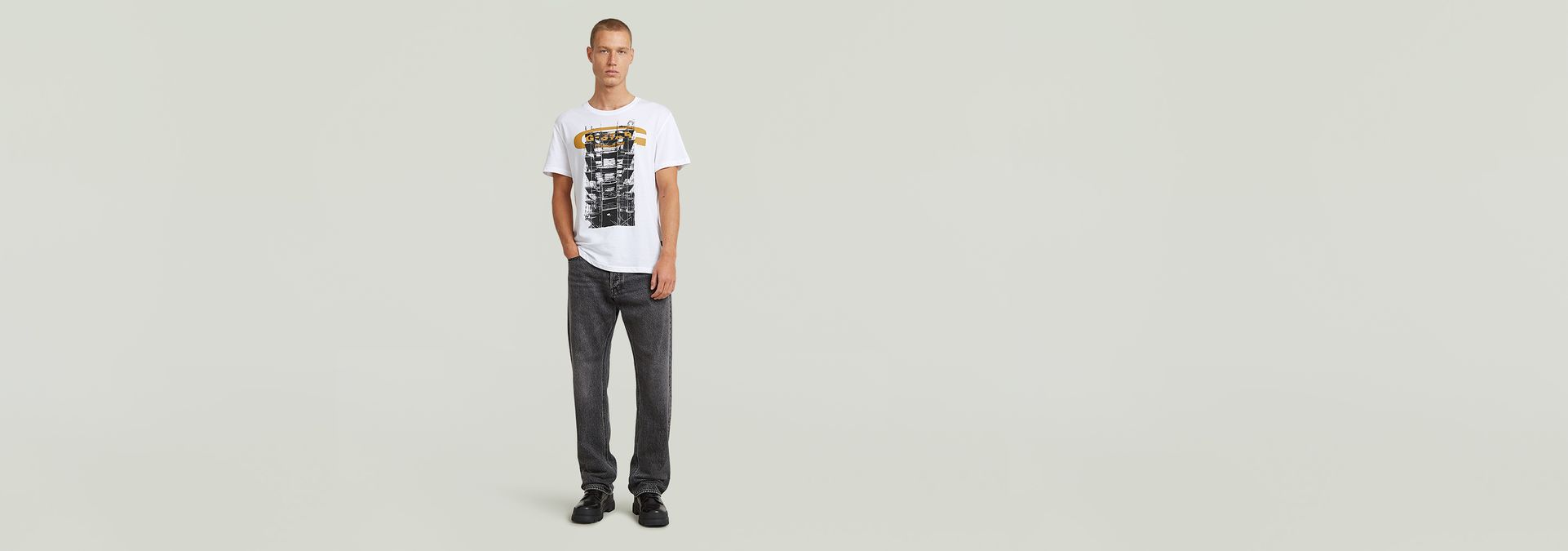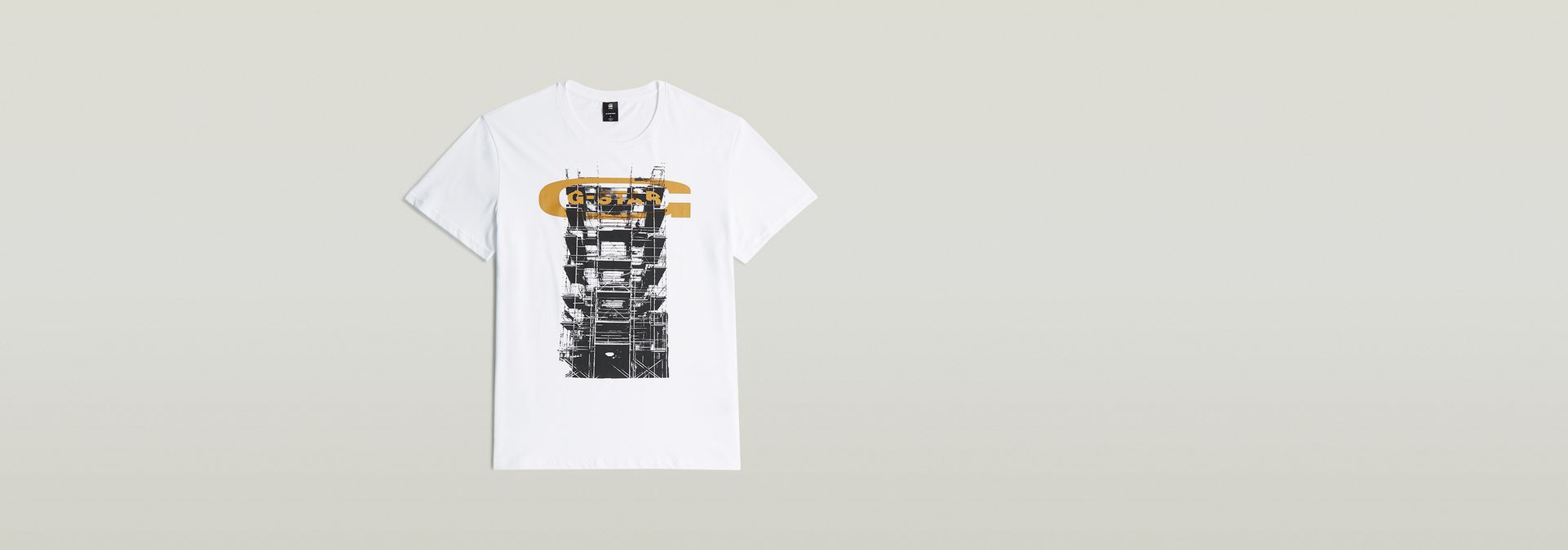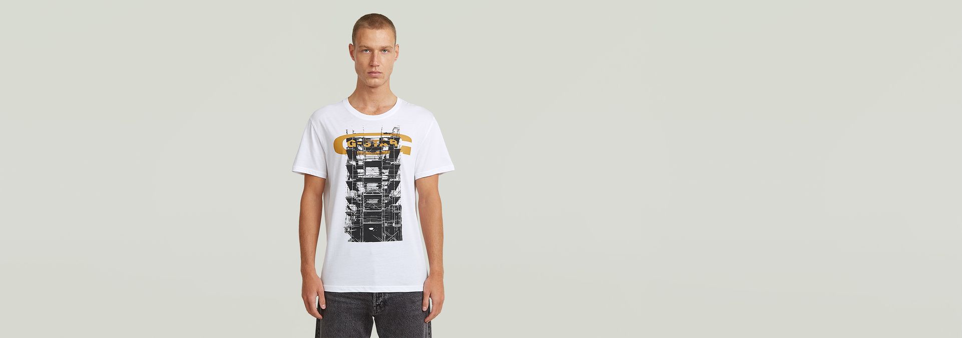 The Building Graphic T-Shirt features a regular fit with a round neckline. A bold graphic print adorns the front, adding a distinctive touch.
