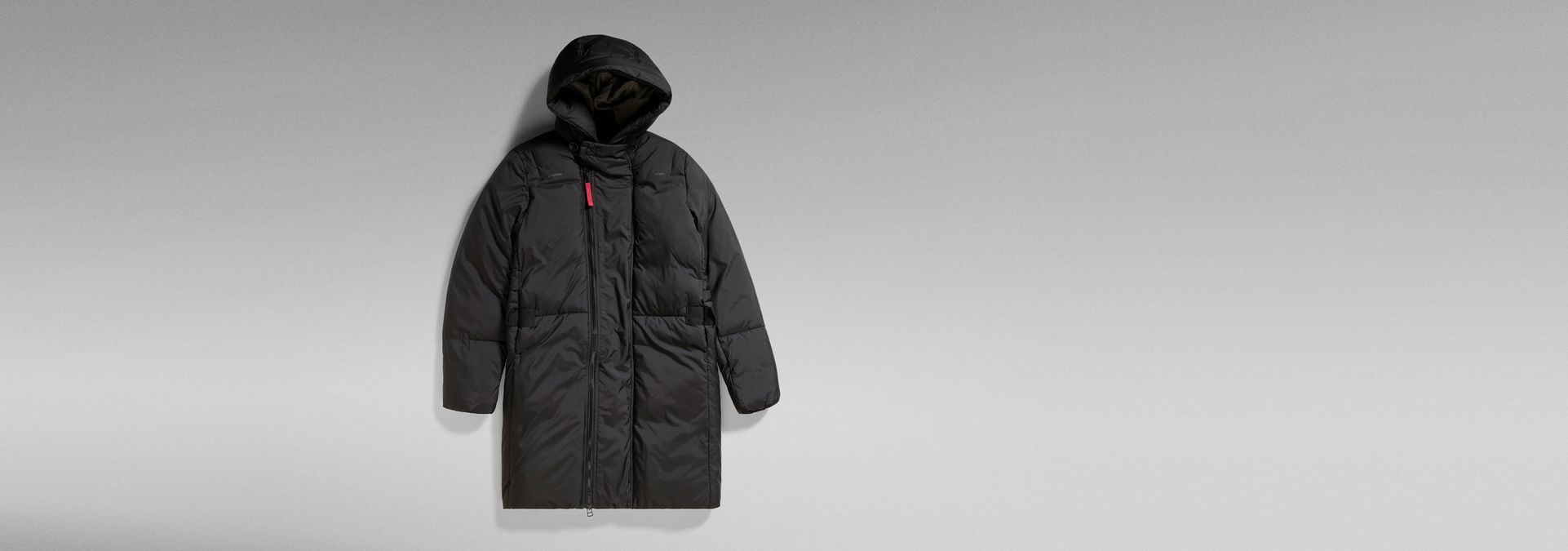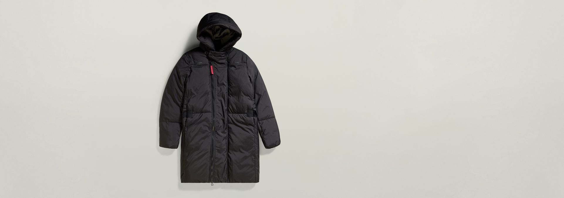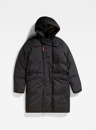 This G-Whistler padded parka is cut from a water repellent fabric, offering a comfortable hood with a broad peak. The front zipper closure is covered by a panel with snaps to block out the wind. The added tab at the top secures the front neck for optimum protection. Also the waist is adjustable, as there is a puller cord hidden inside. This padded parka offers pockets at the side as well as inside. Woven tape at the shoulder and pocket entrance add detail to the front, while the upper back shows a strap.