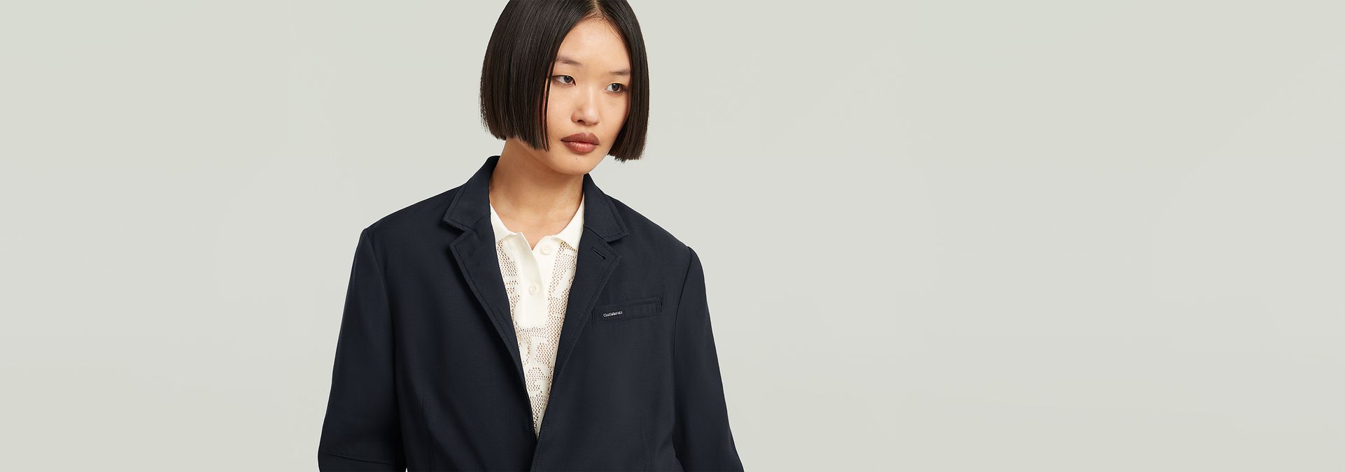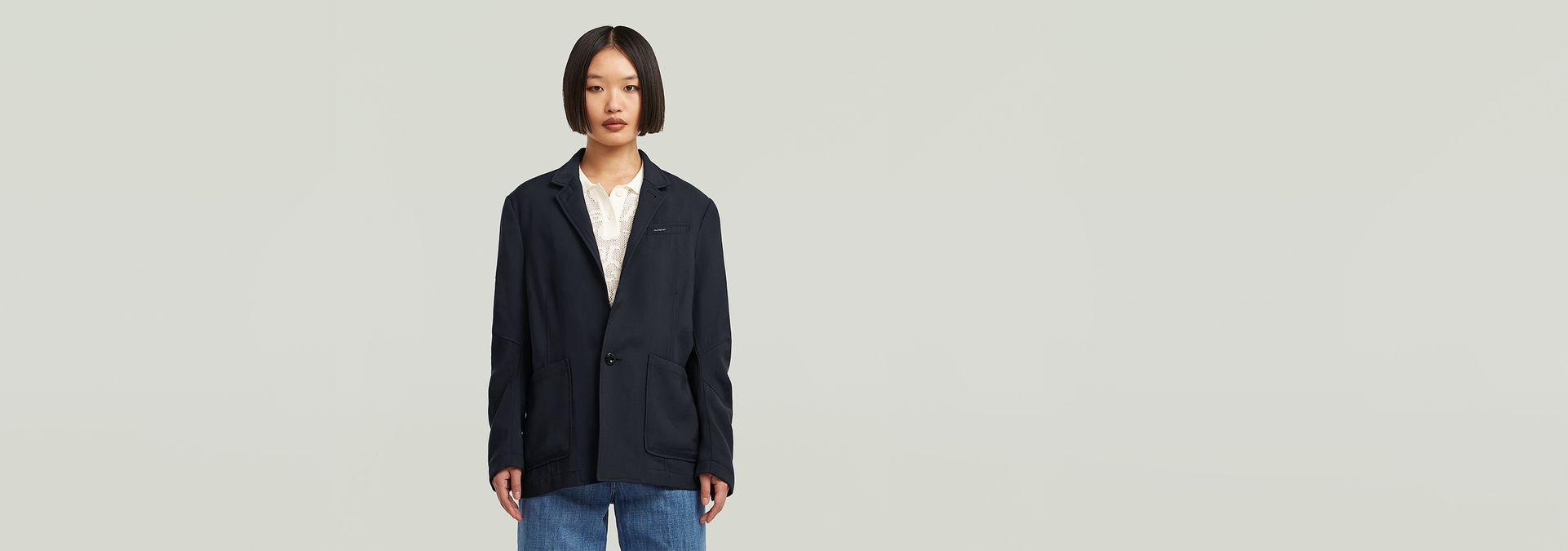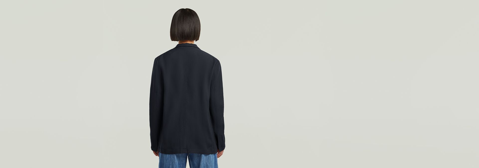 Blazer 3D Boyfriend offers a loose fit. Use the top button to change the lapel collar in a fully closed neck line. The added seams at the elbow enhance a 3D-effect. The welt pocket at the chest is finished with a G-STAR rivet. This blazer is semi lined.