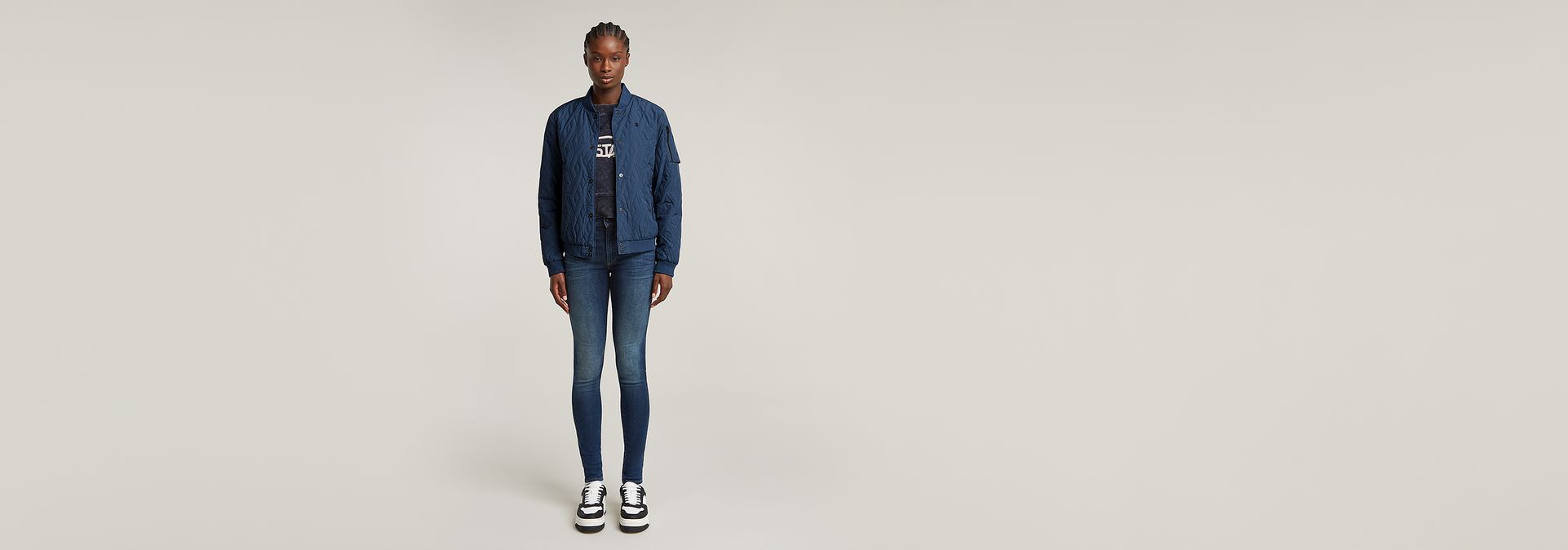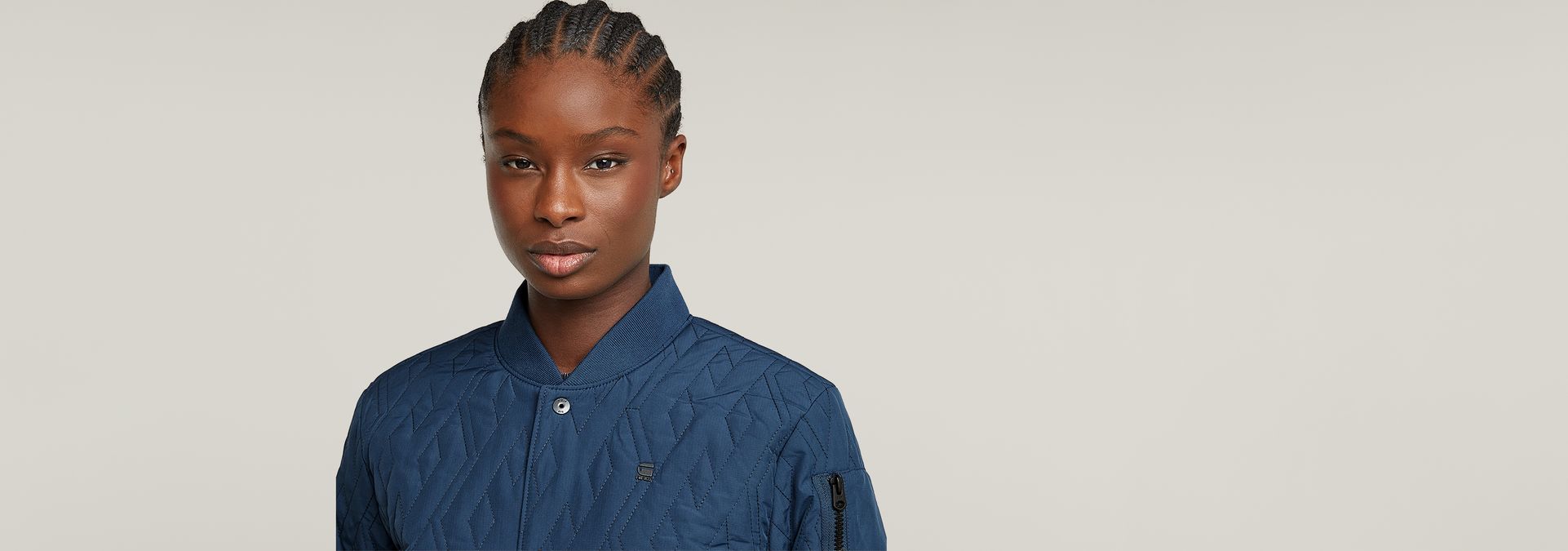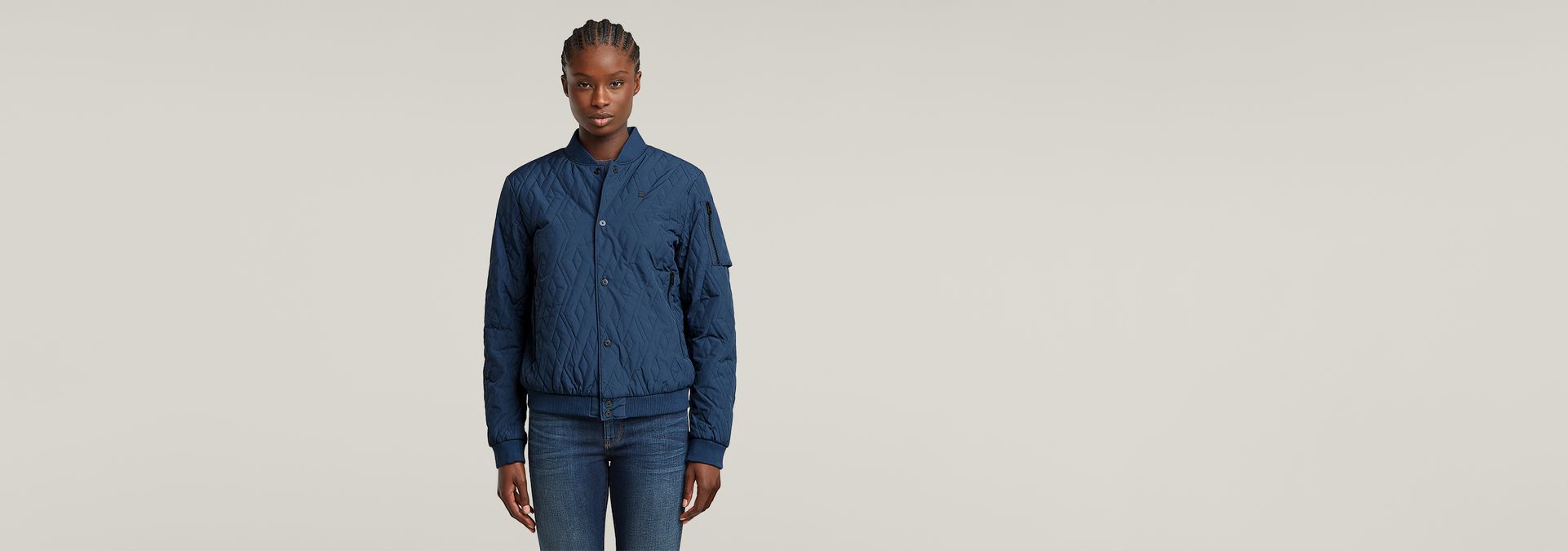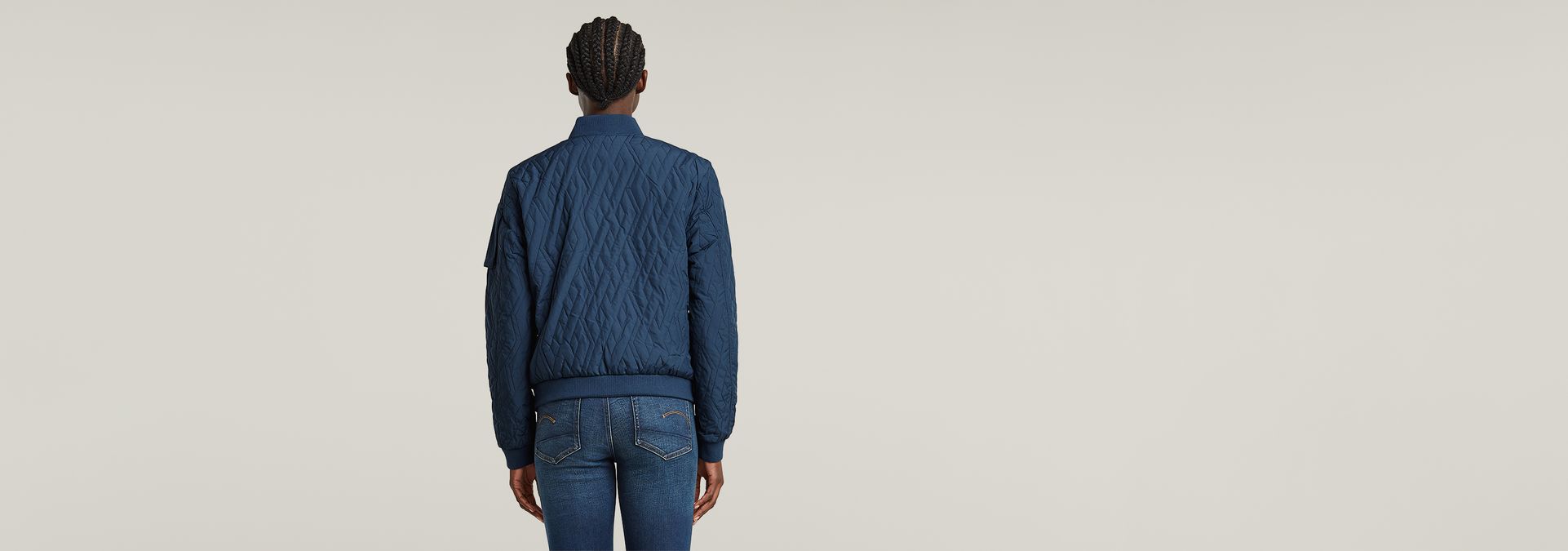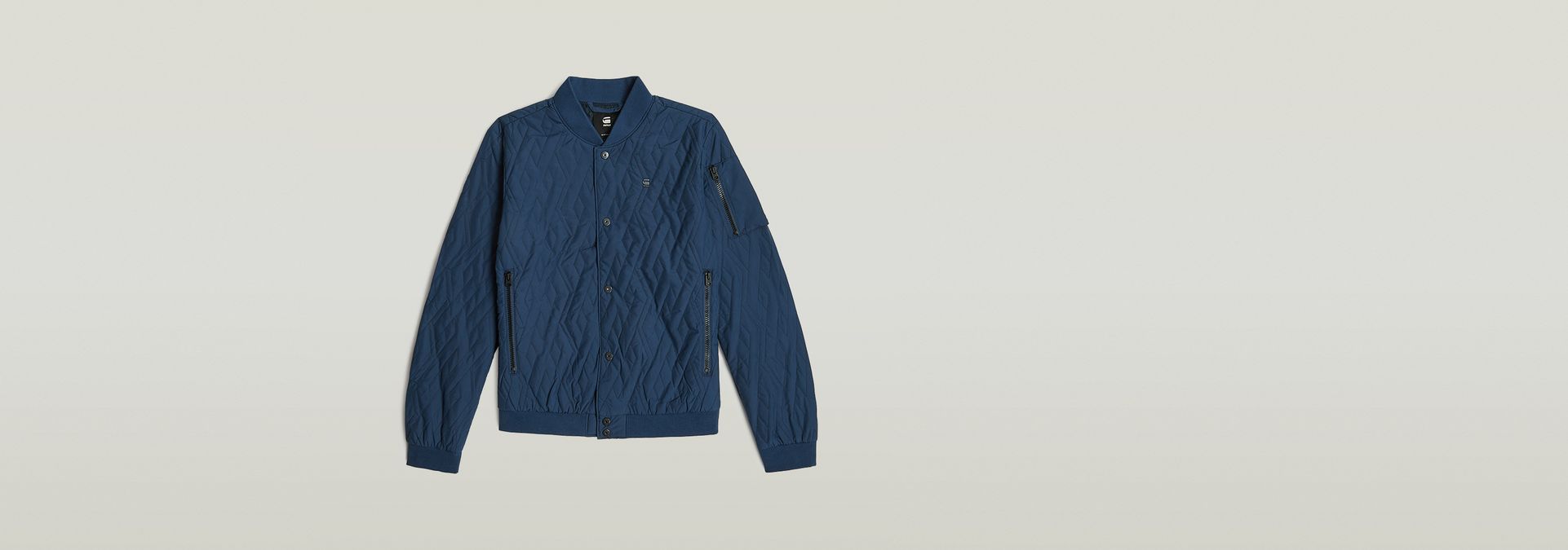 Bomber Quilted is cut from a water repellent fabric. Zip pockets are set at the waist and upper sleeve. The ribbed edges add a comfortable finish.