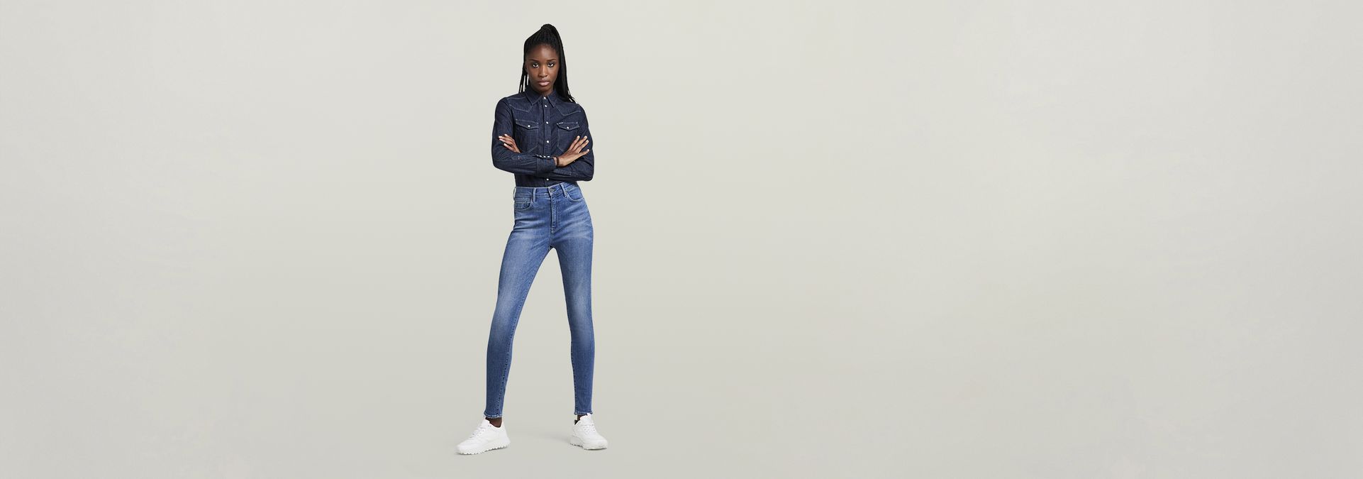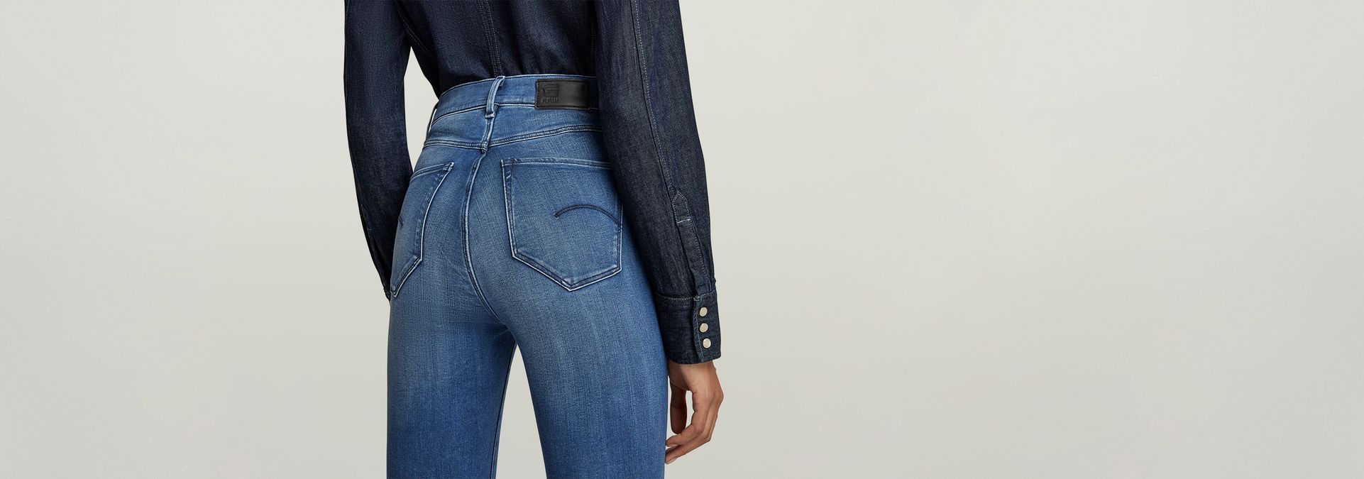 These G-Star Shape jeans are designed with curves in mind, where the seat is shaped for maximum shaping. Offering a high waist on a super skinny fit. The shaped waistband wraps around the waist to eliminate any gaps.