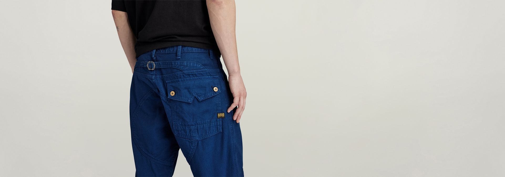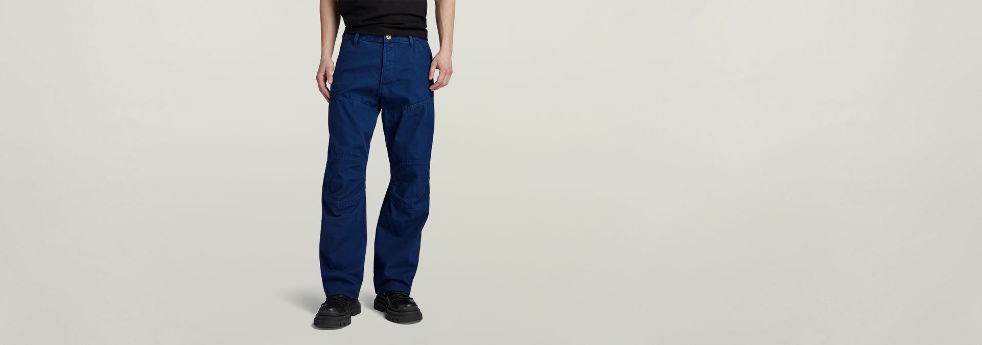 Jean 5620 3D Loose offers a relaxed fit. The coin pocket is moved upwards, covering the waistband. At the back, a flap pocket is set. Finetune the fit with the cinch at the back. These jeans show shaped knee patches, heel guards and angled seams at the thigh.