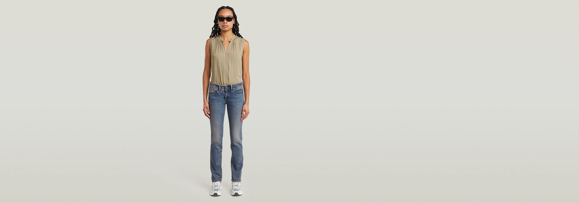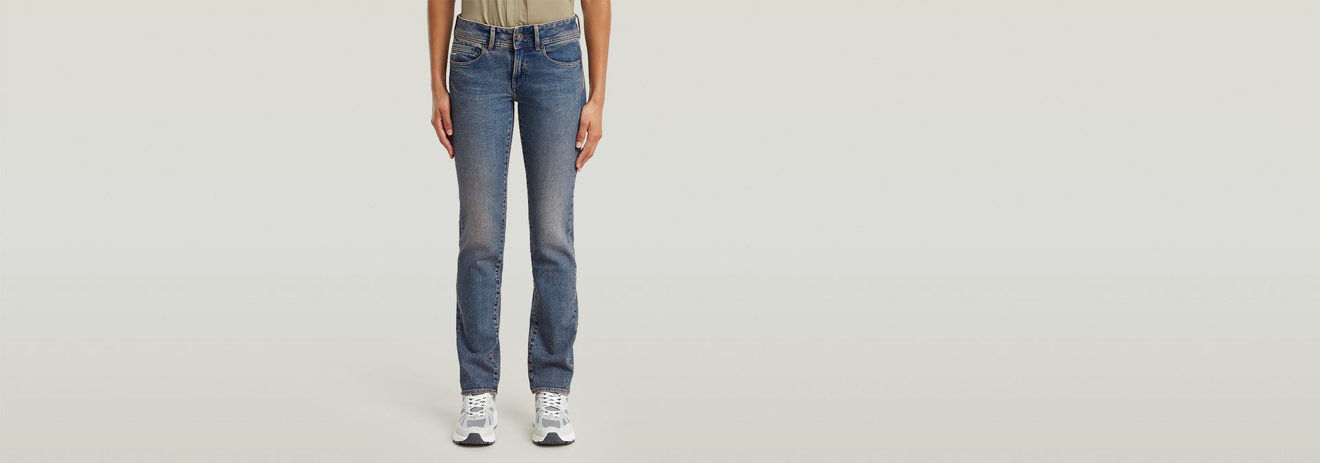 The Midge Slim Straight jeans offer a slim fit with a low waist and a long length.