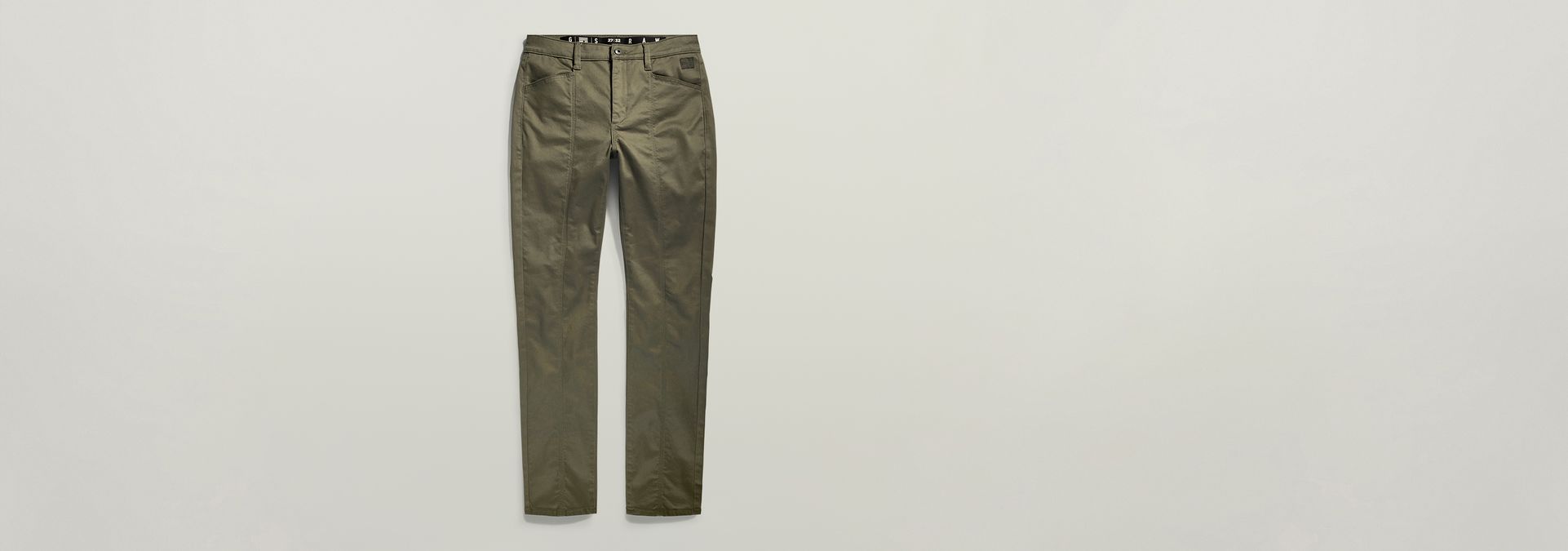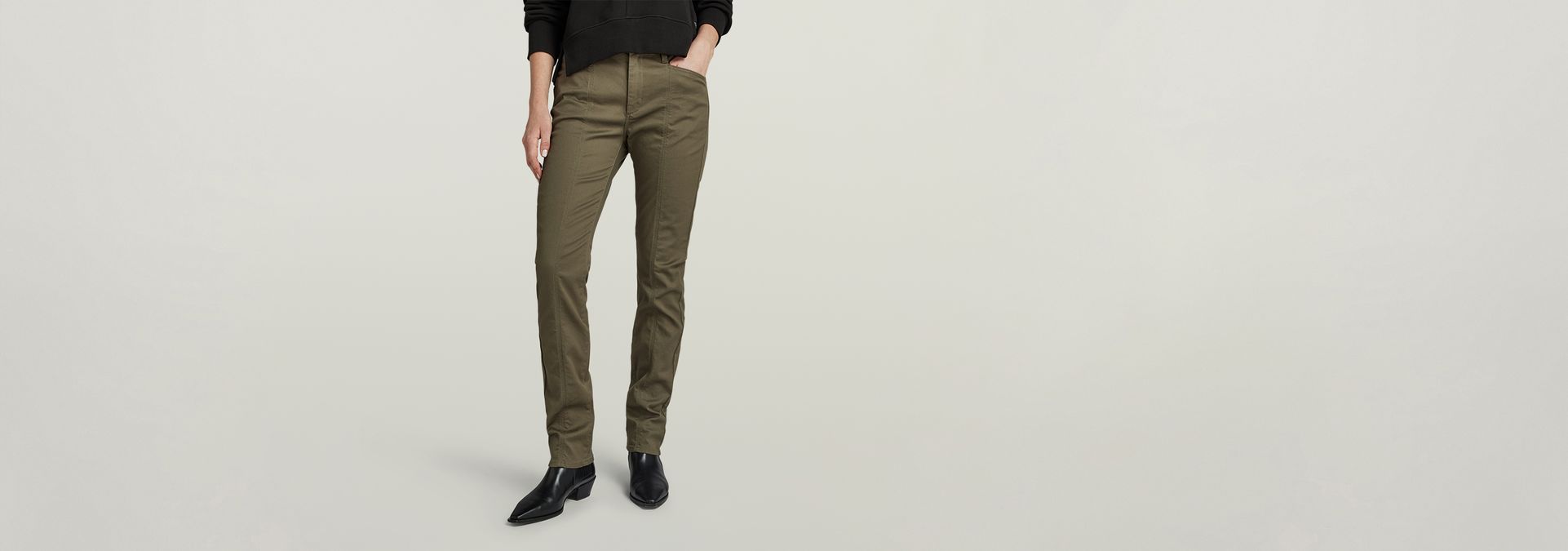 Pants High offer a skinny fit. Additional seams at the front and back leg add to it.