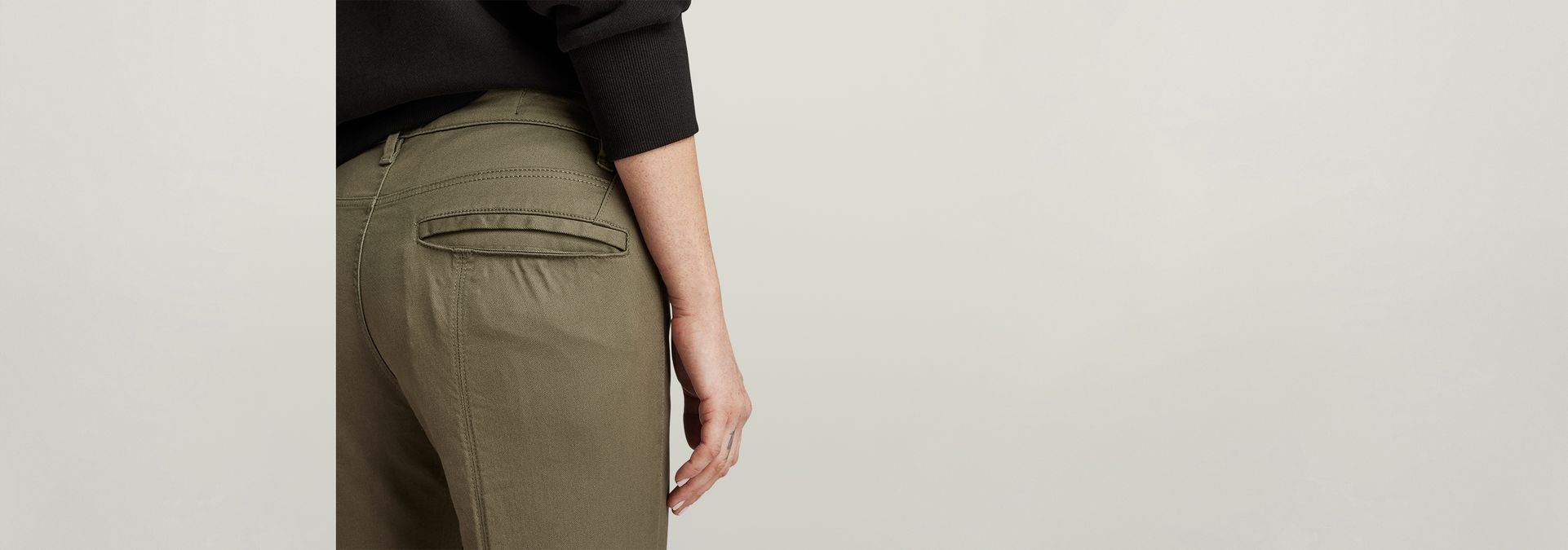 - Slim welt pockets at the back