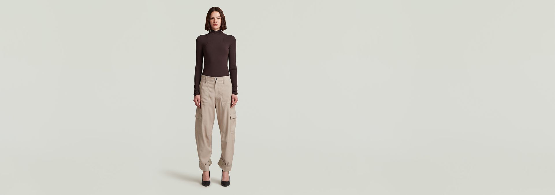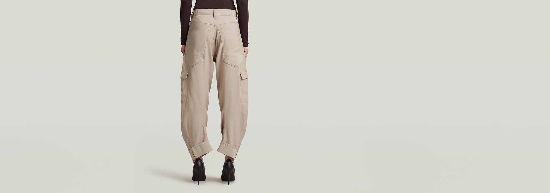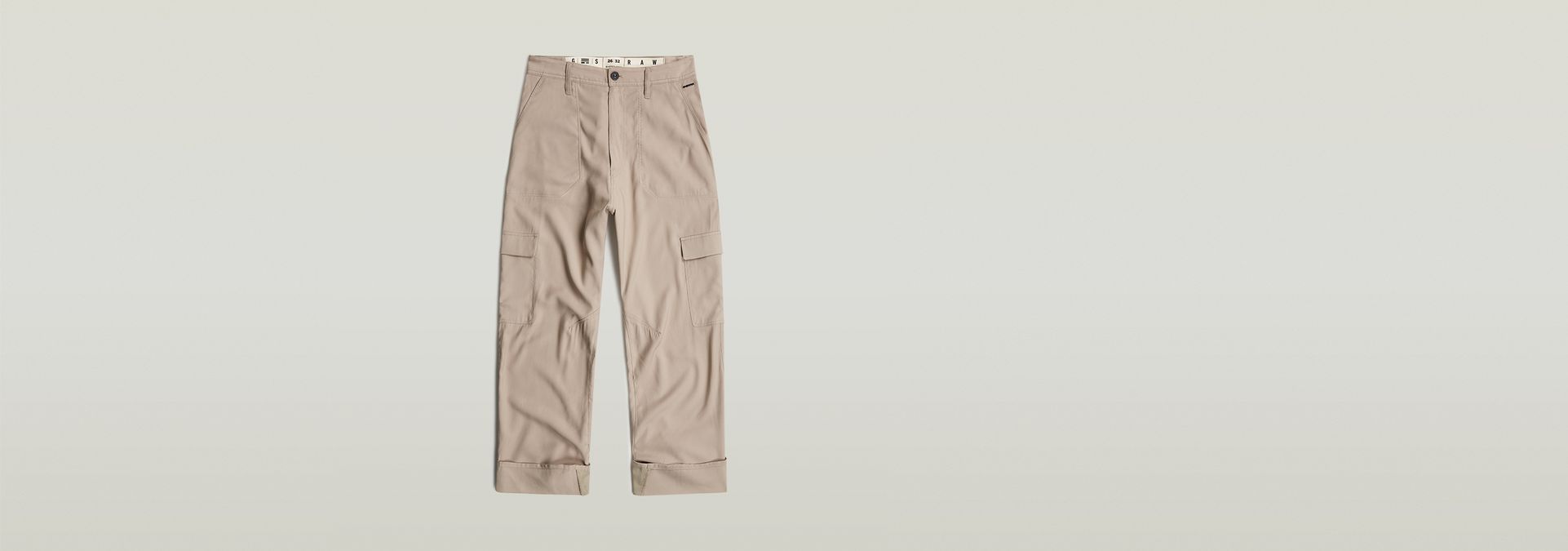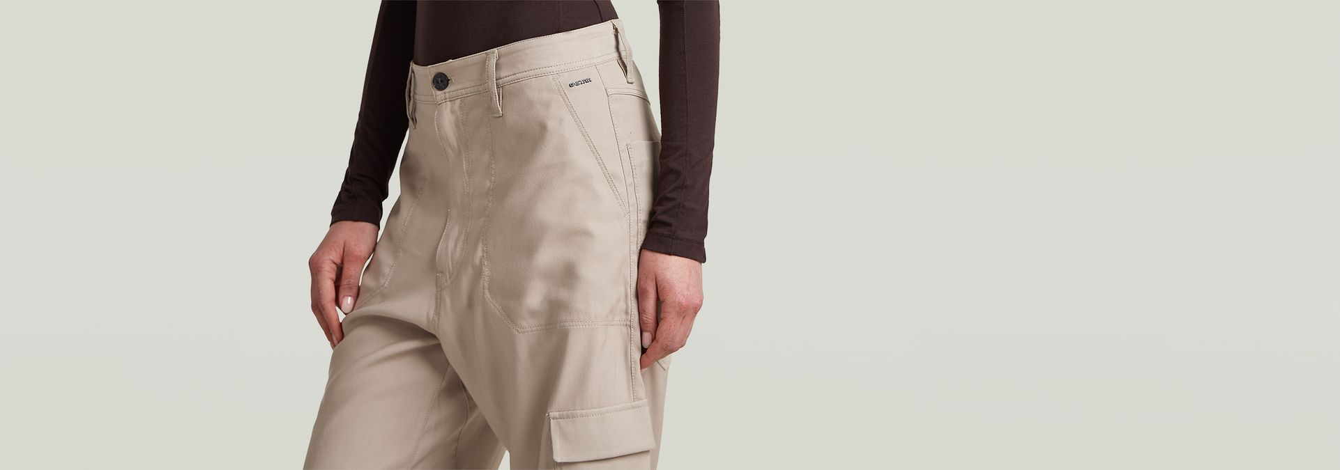 Cargo pant 3D Boyfriend features flap pockets at the front thigh. At the back, oversized patch pockets are created. The pleats at the inner leg enhance a 3D-effect.