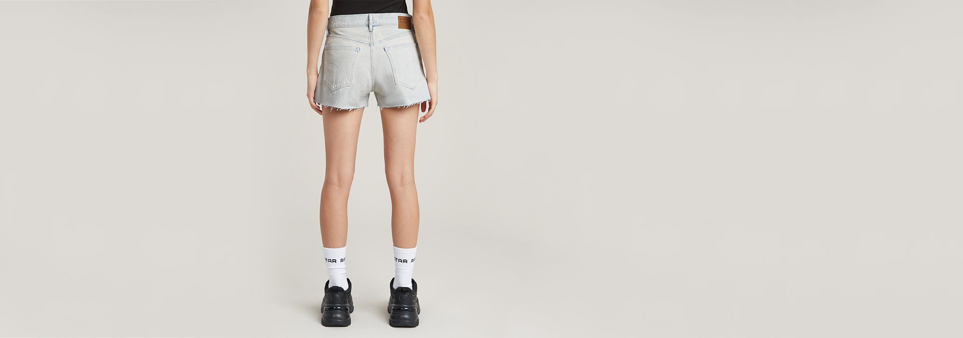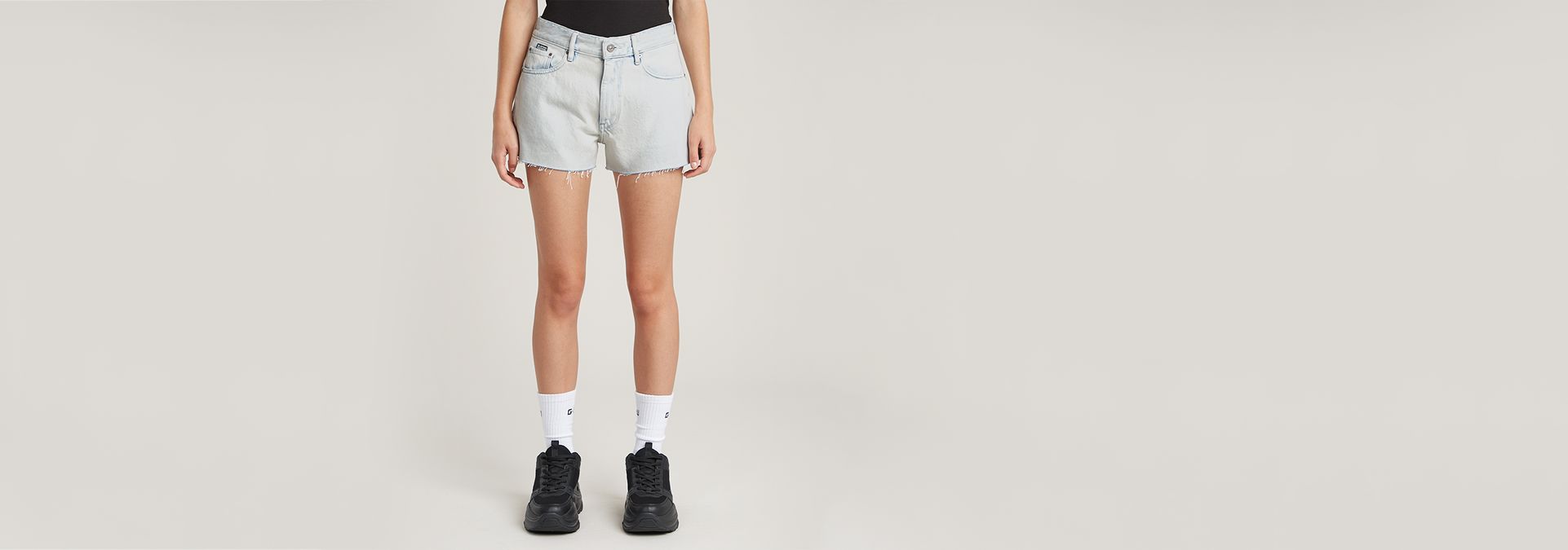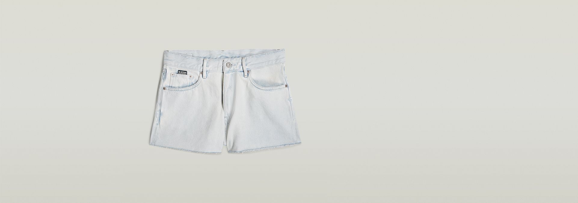 These True denim shorts offer a classic 5-pocket design with a zip fly. The raw edge finish adds character.