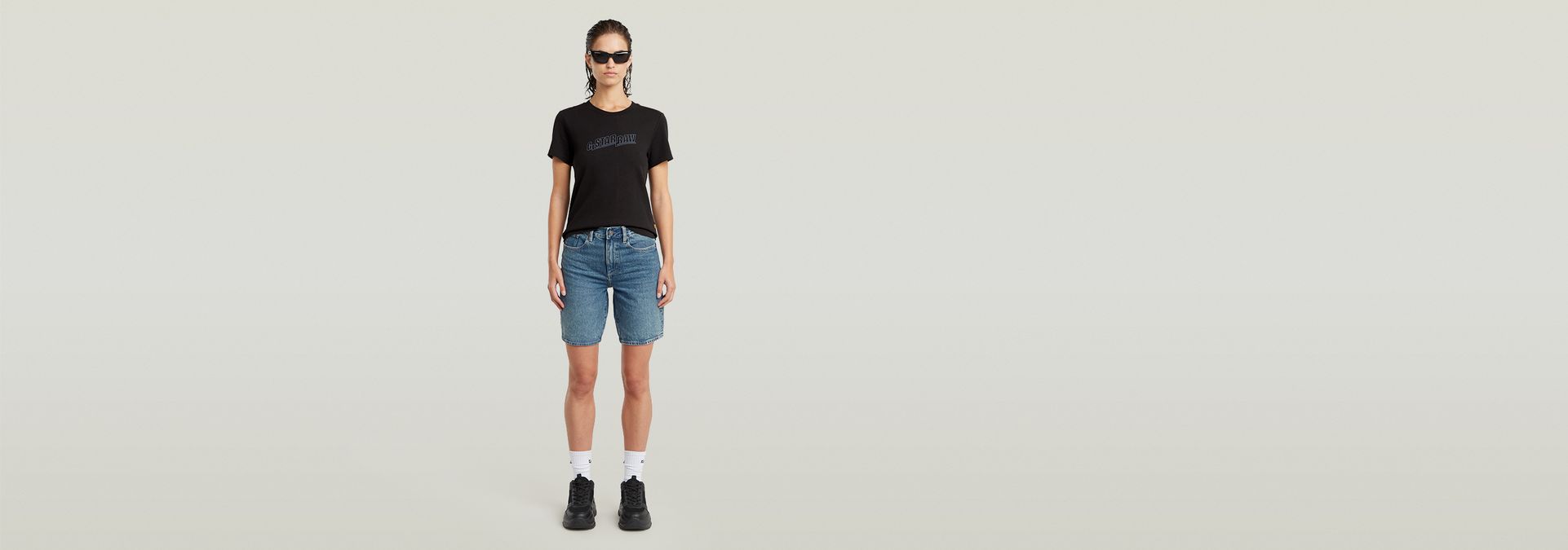 The Viktoria Bermuda Short offers a high waist and knee-length fit.
