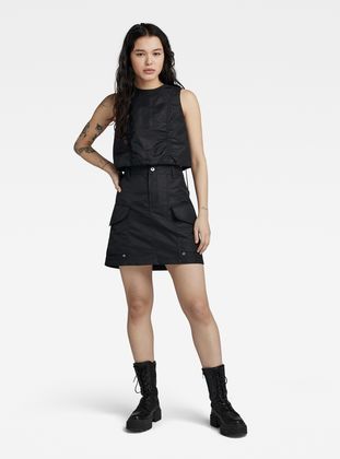 Mini skirt Cargo is designed in a slim fit and offers a short, upper thigh length. Waist pockets are partly covered by the cargo pockets. The flap pockets at the back offer a snap button closure. This G-Star RAW skirt has a zipper fly.