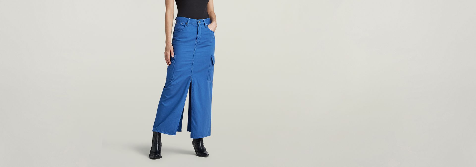 Cargo skirt Viktoria offers a straight fit in a longer length. Slits are created at the front and back.