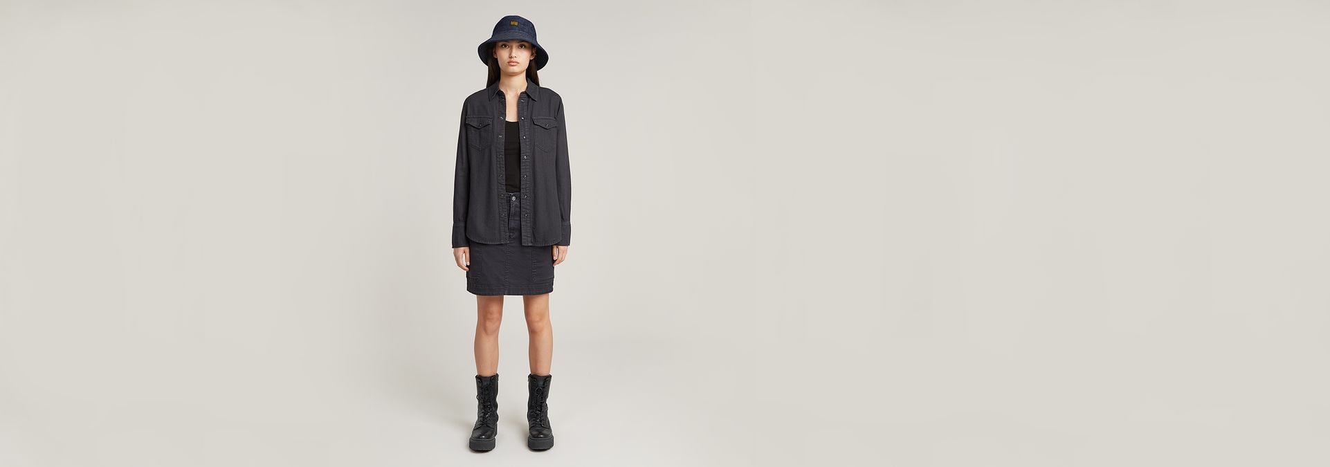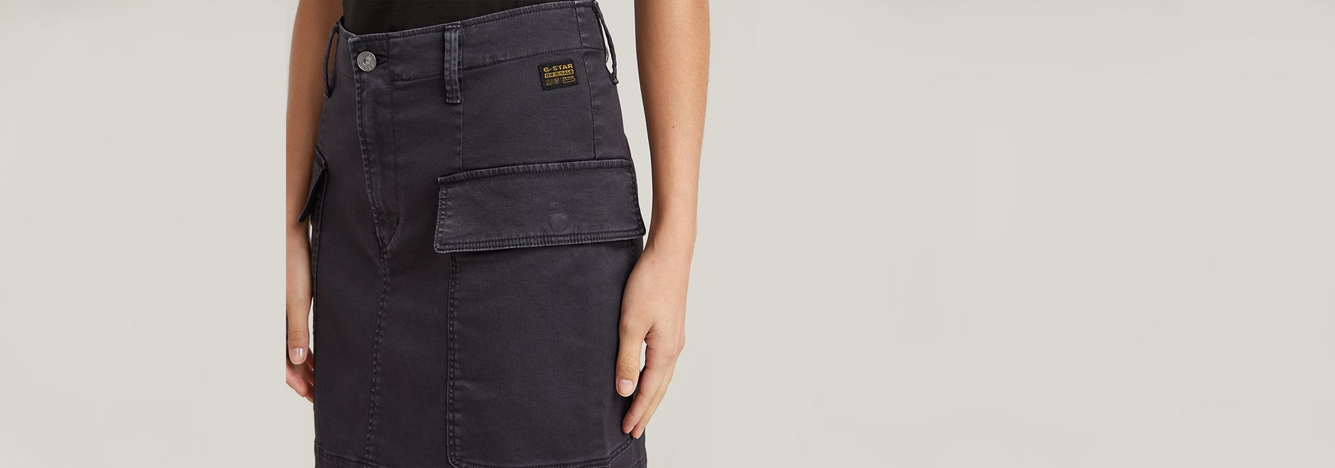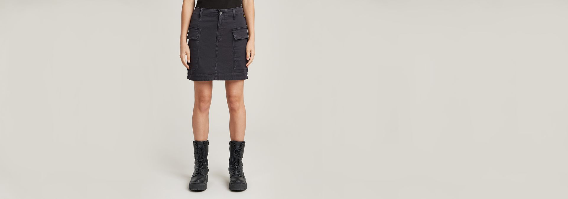 Mini skirt Cargo offers deep flap pockets with hidden snap buttons at the thigh. The added belt loops allow for a belt when preferred.