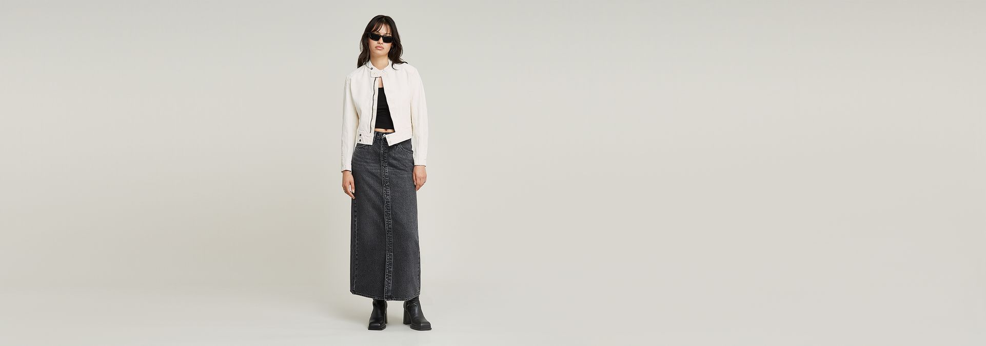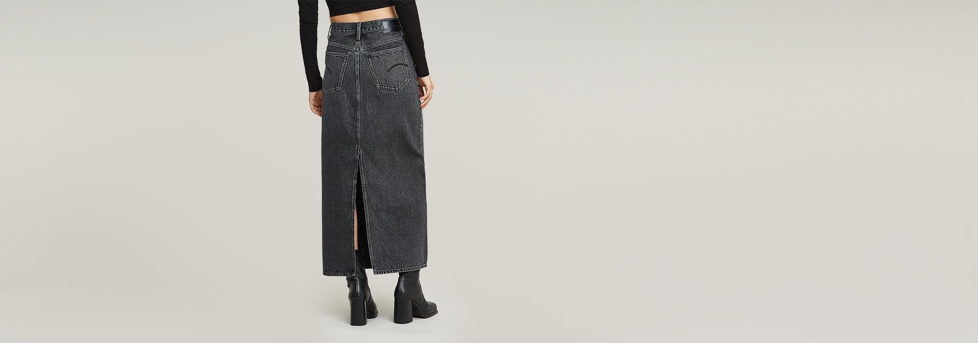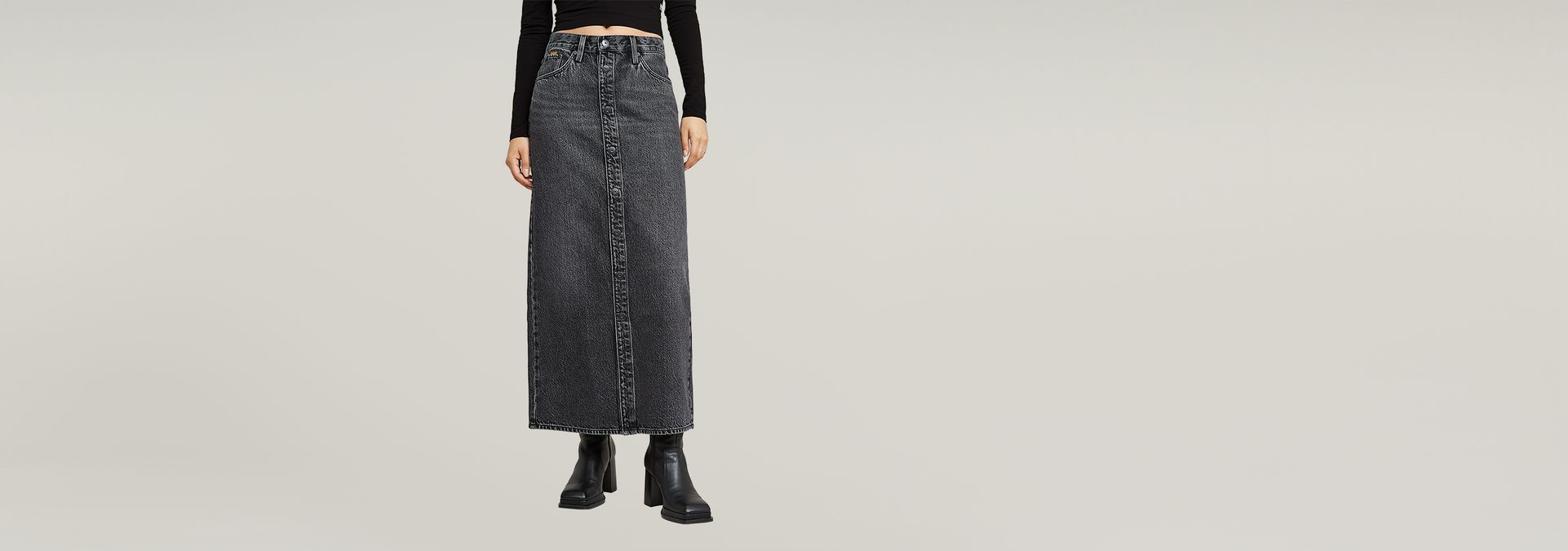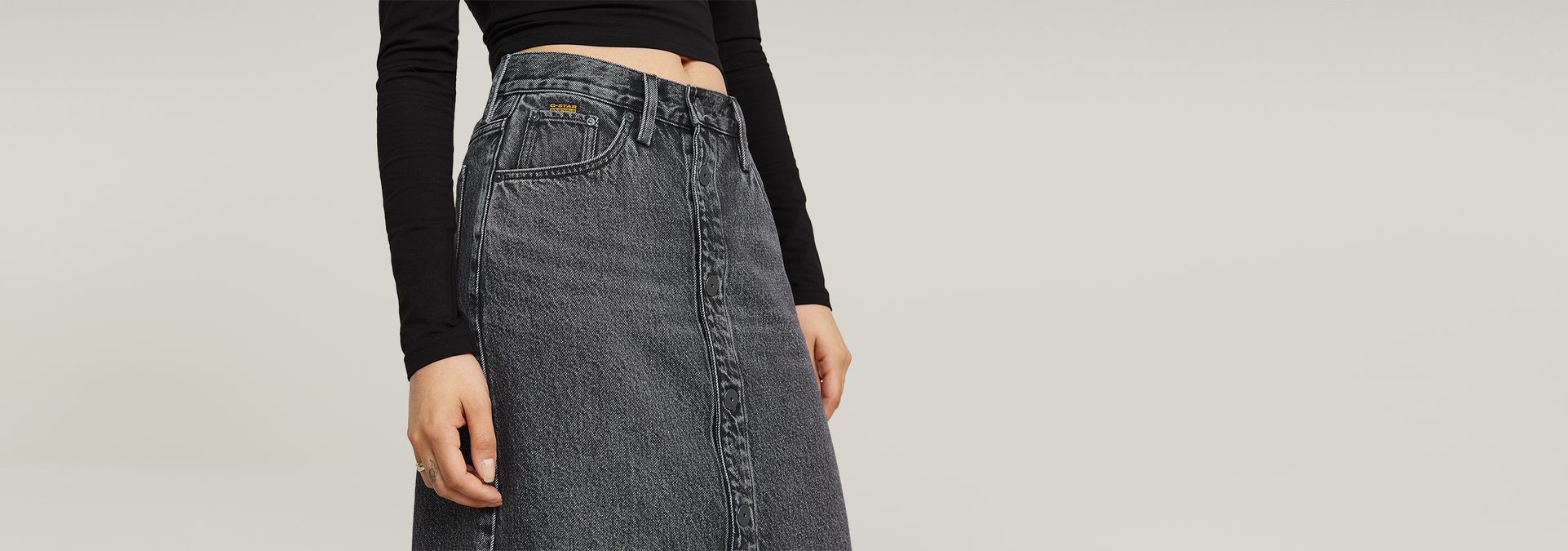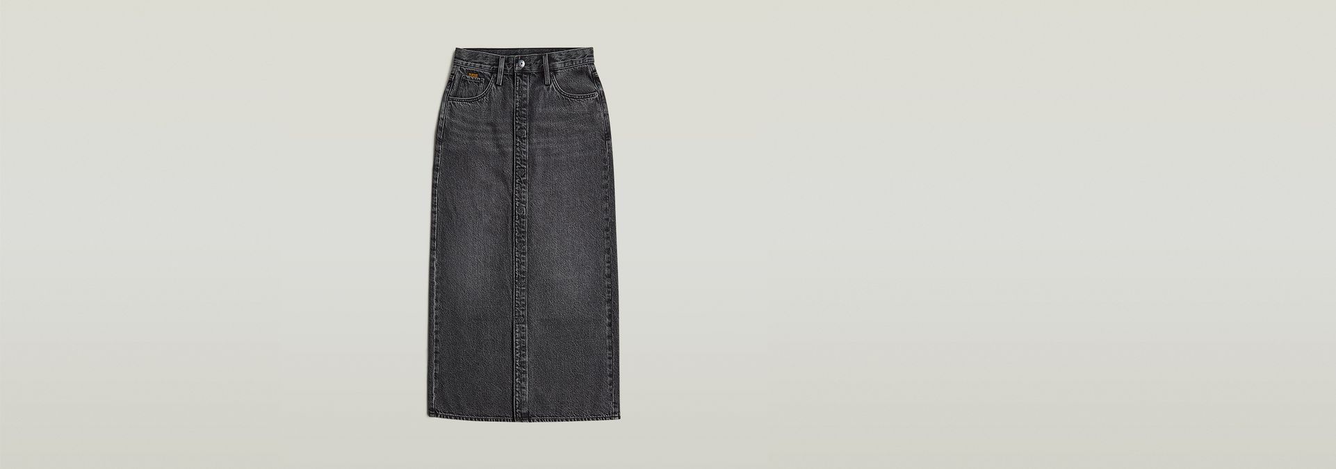 Long skirt Viktoria Snaps is designed in a straight fit and offers a high waist. Snap buttons are added to the front. A deep slit is created at the back of this denim skirt. One of the inset pockets shows a coin pocket. Back pockets complete it.