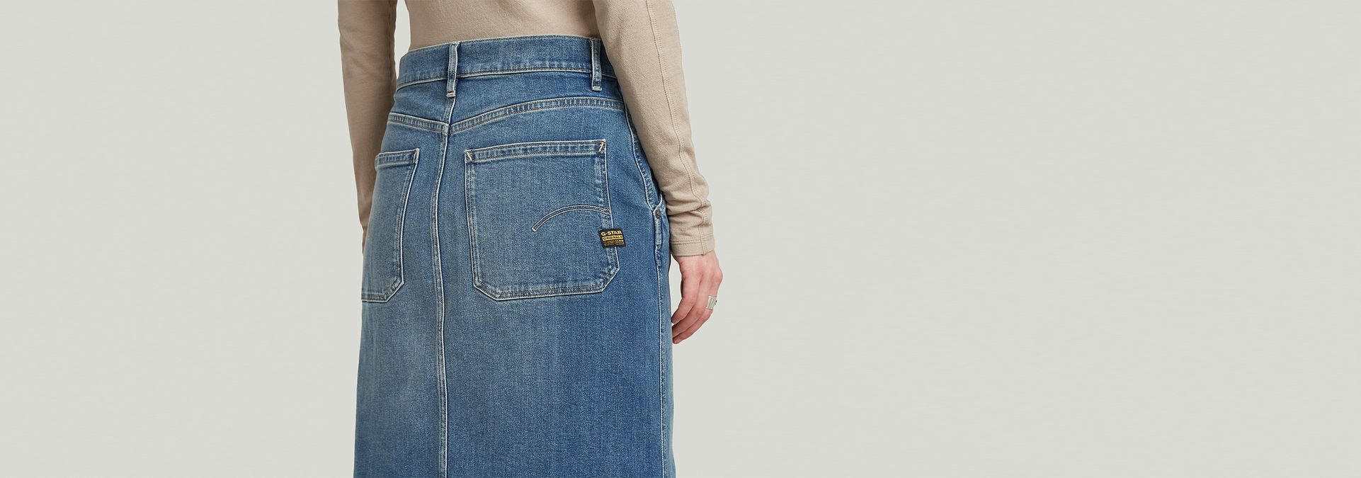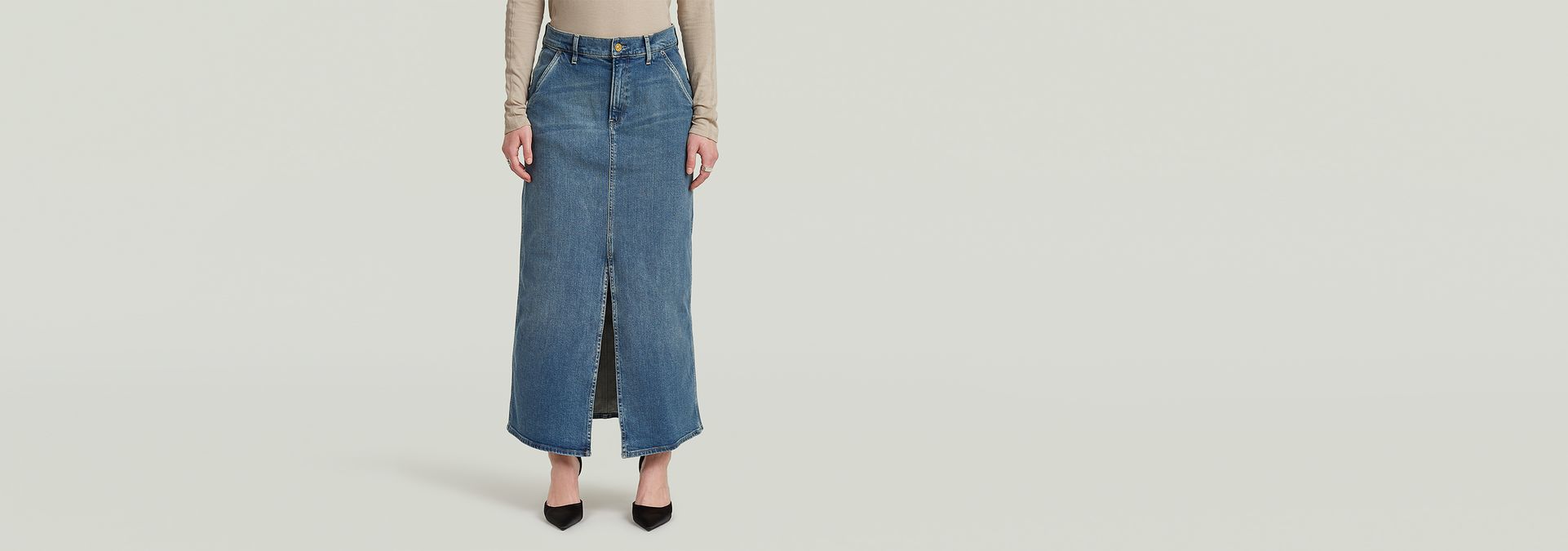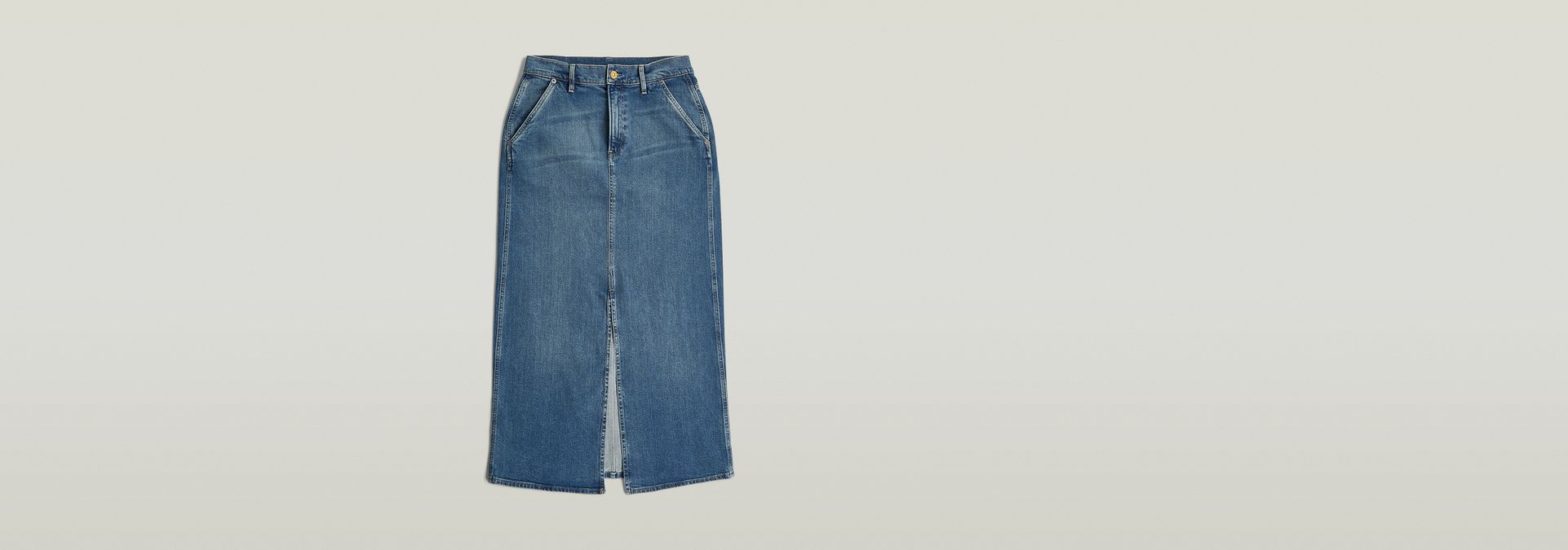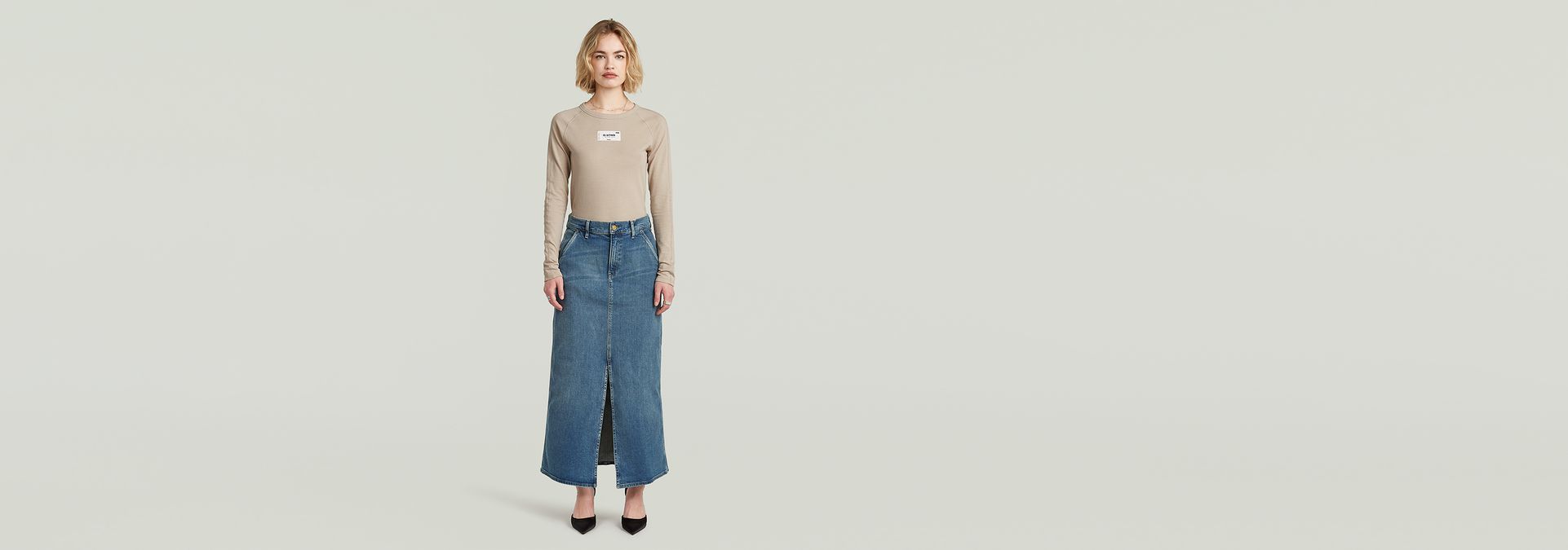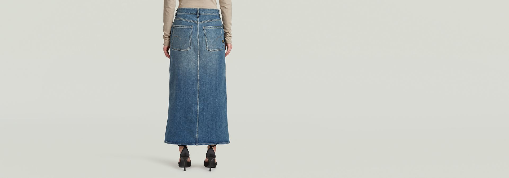 The Revynn Long Skirt features an ultra-high waist and a straight fit, offering a sleek and elongated silhouette.