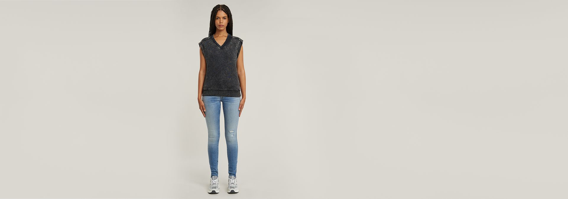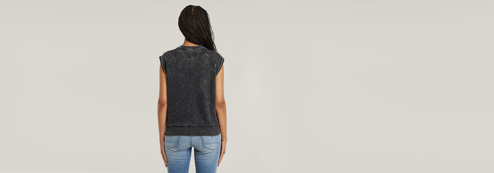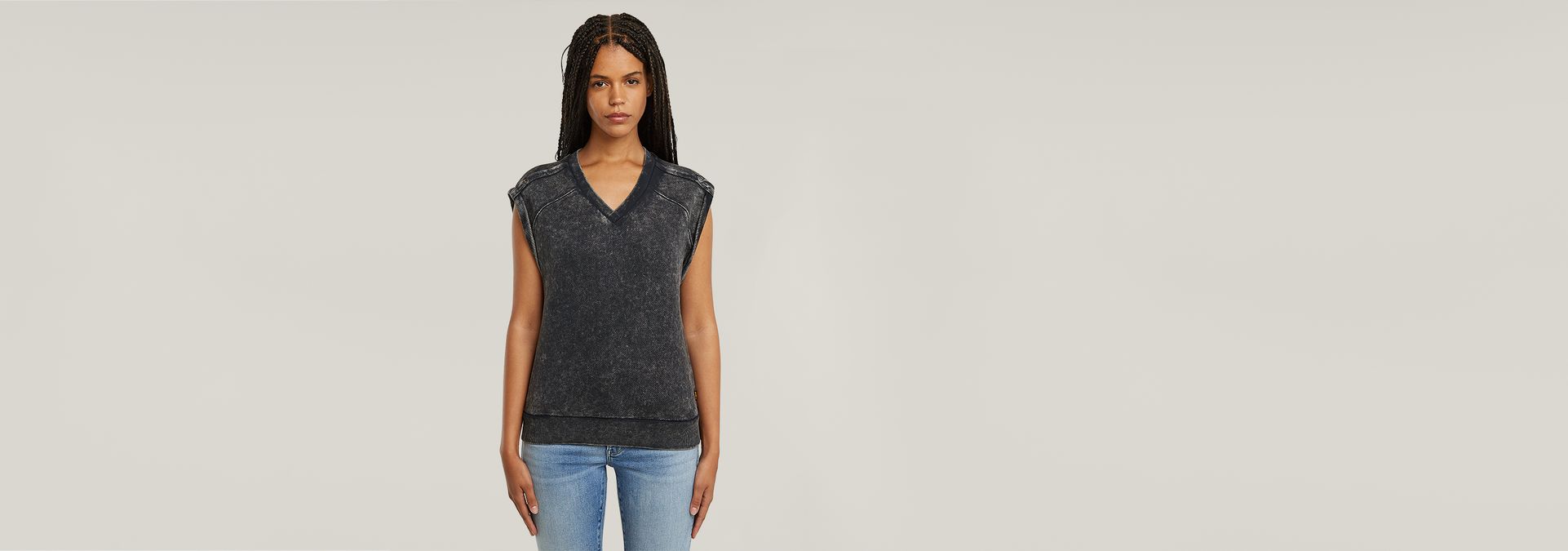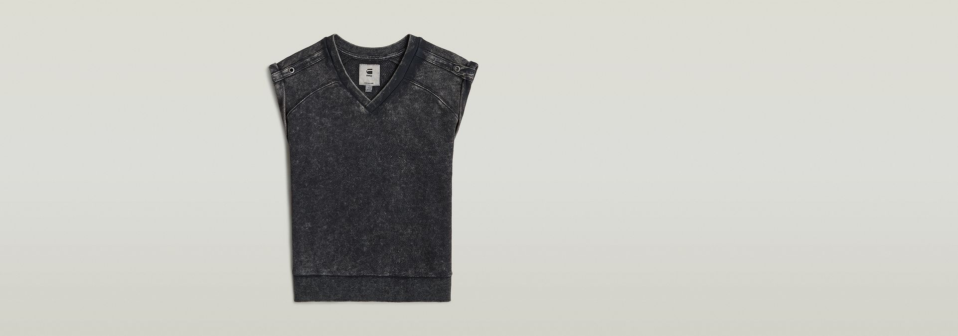 Sleeveless sweater Washed is designed in a straight fit. The short sleeves are rolled up and fixed with a rivet and the waist is finished with a ribbed edge.