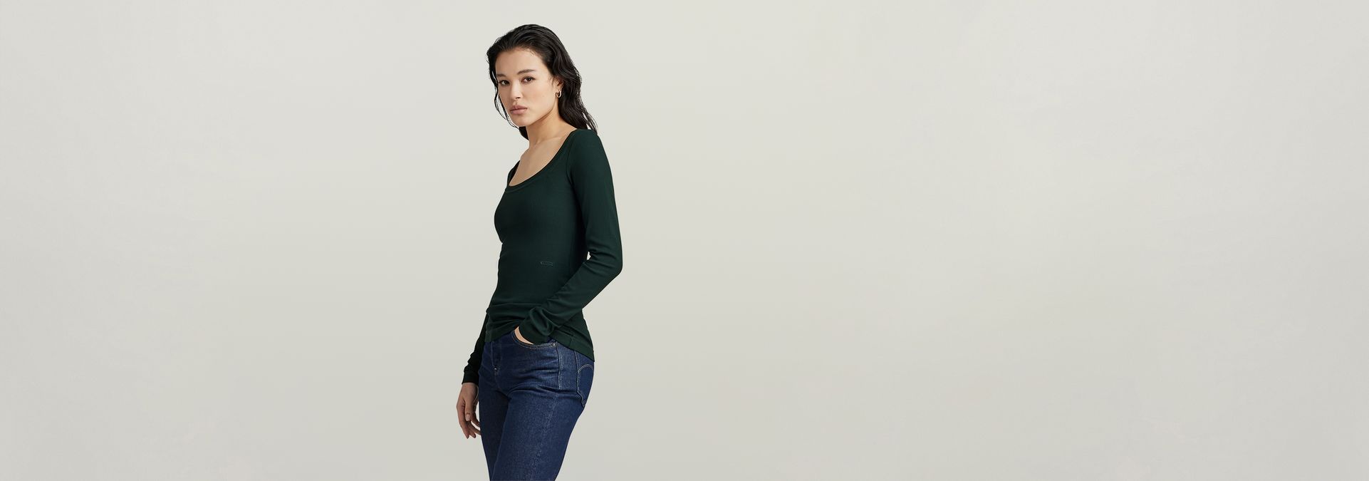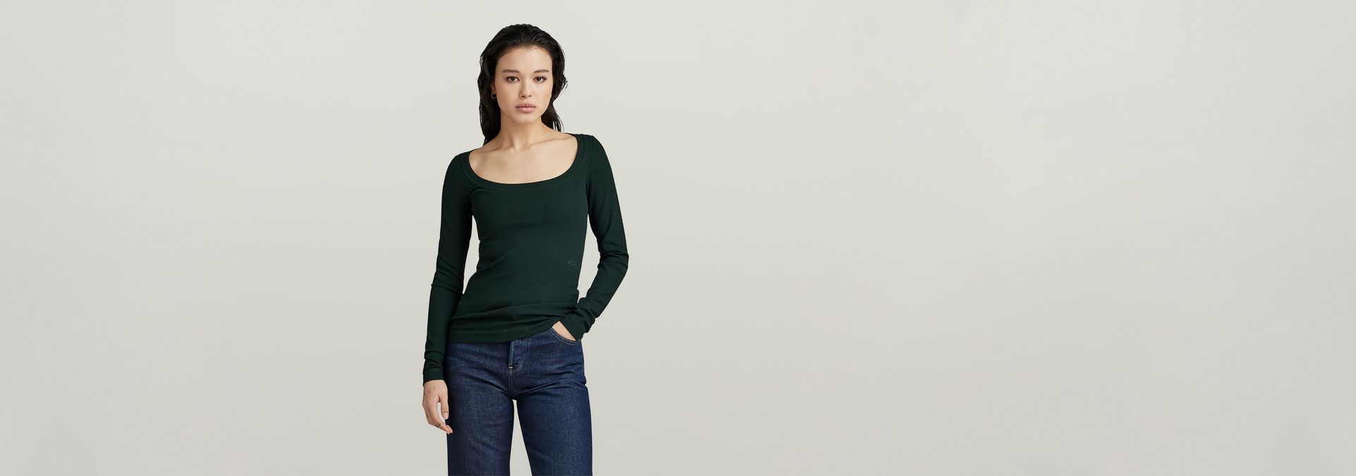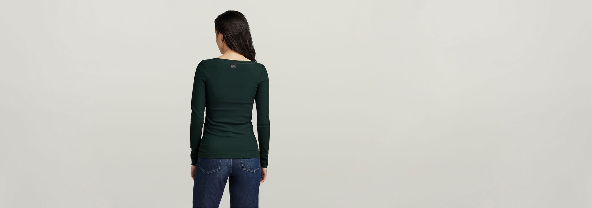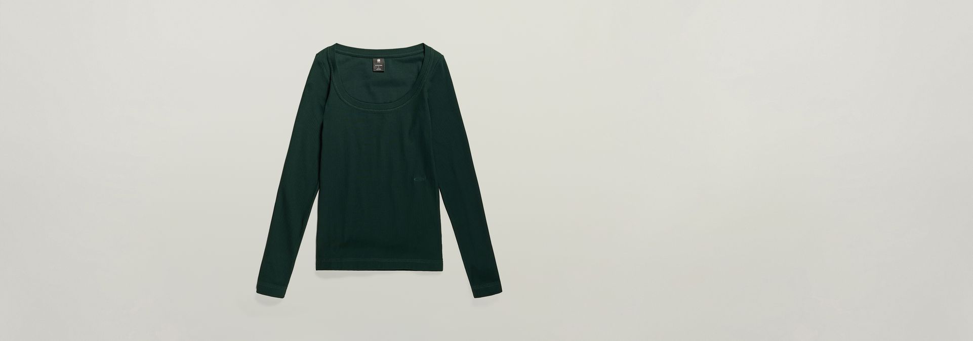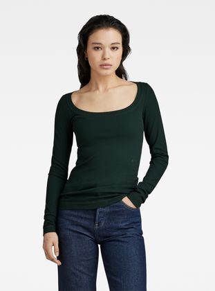 Long sleeve top Rib Scoop is designed in a slim fit and offers a wide round neck with a broad binding. A subtle print at the waist completes this style.