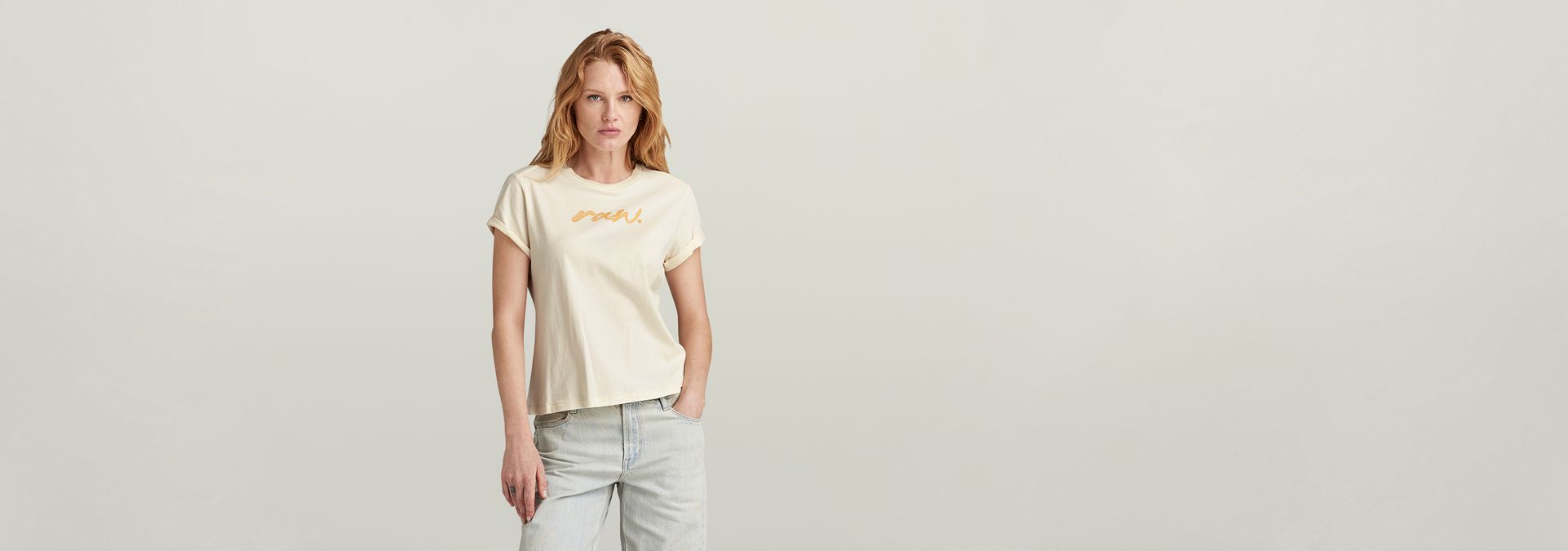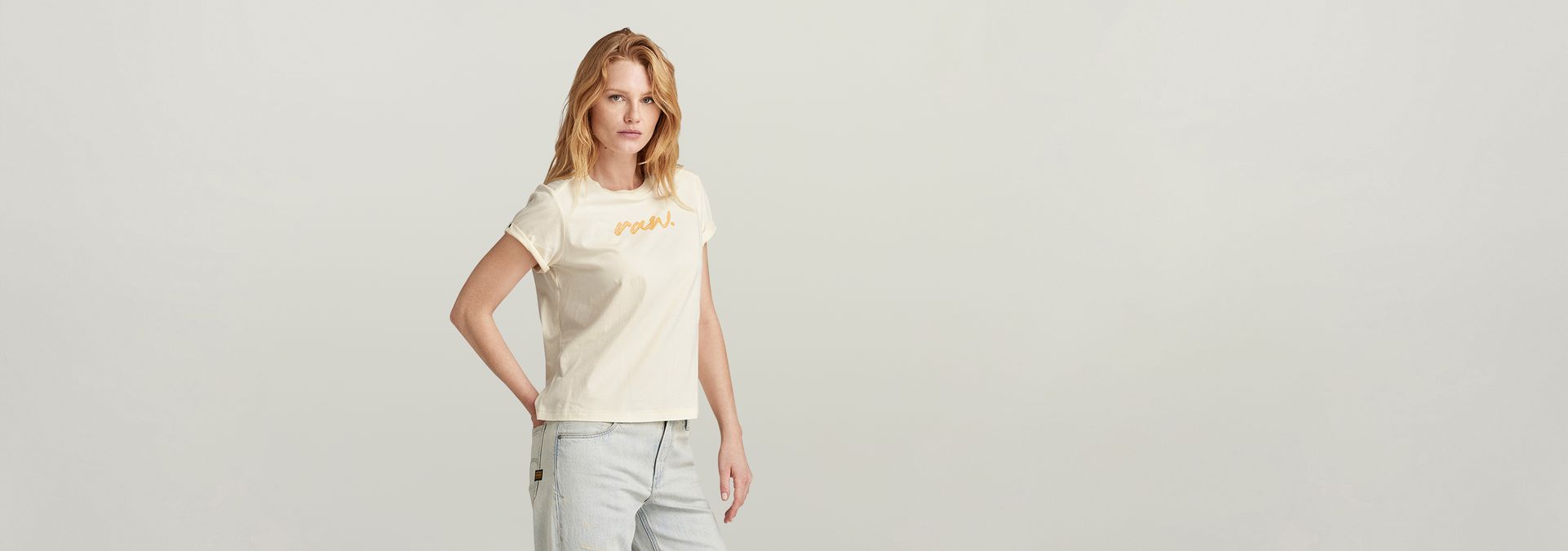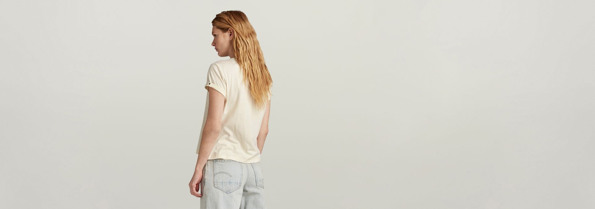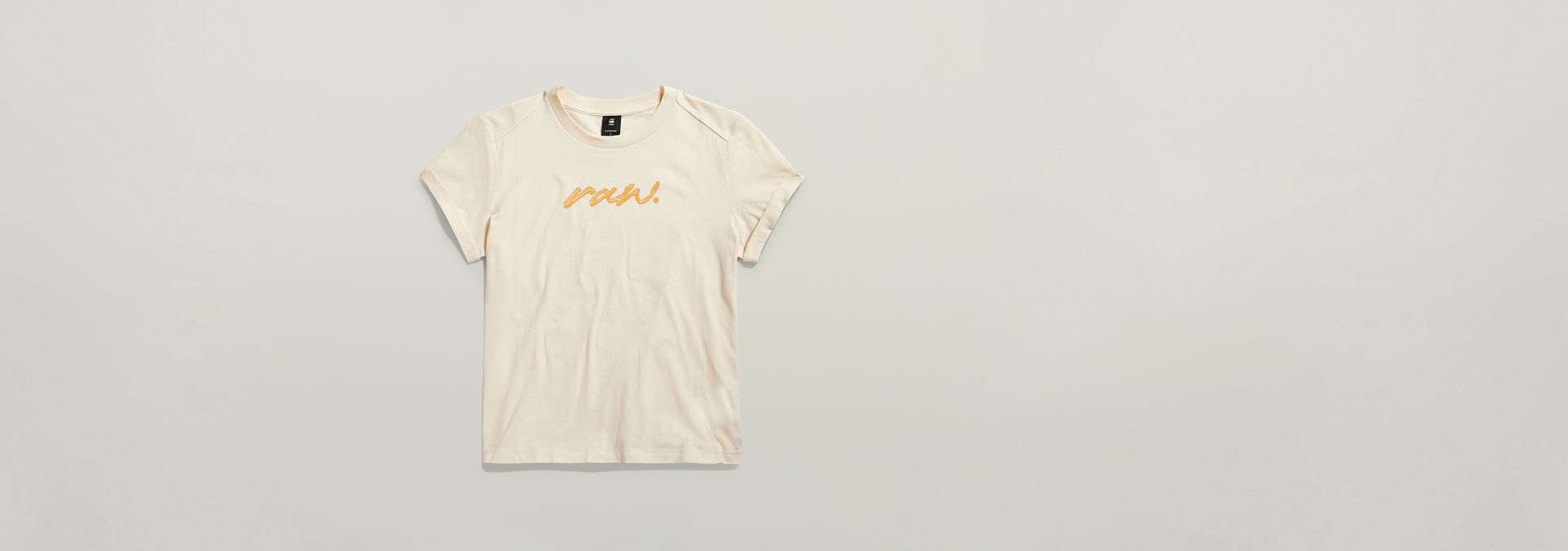 Top RAW dot shows short sleeves with a folded edge. A rivet fixates it.