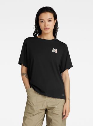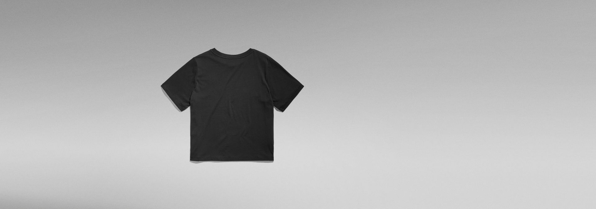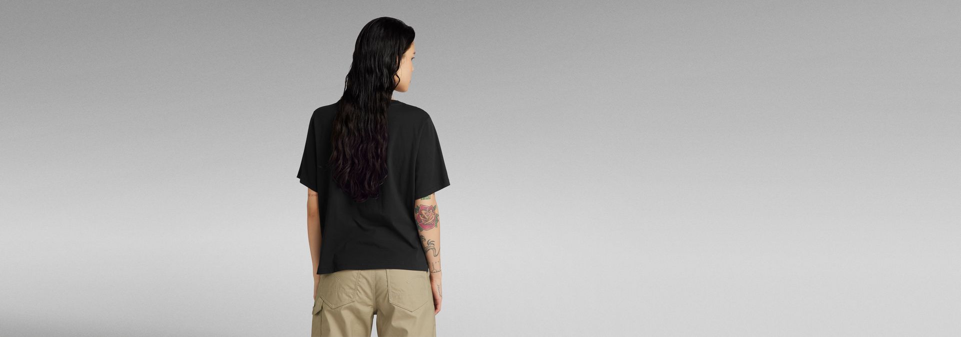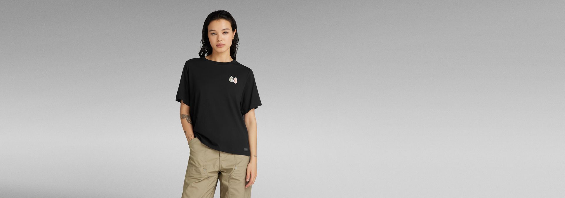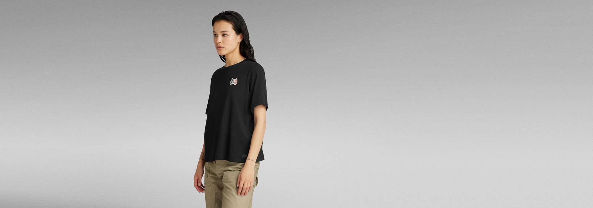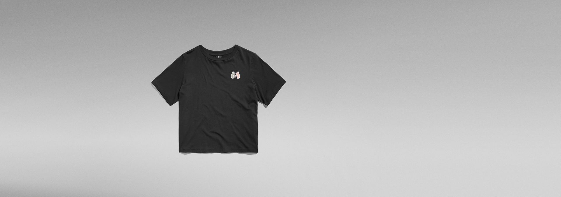 Top G-Na Badge is cut in a straight, boxy fit. Slits at the side add detail.