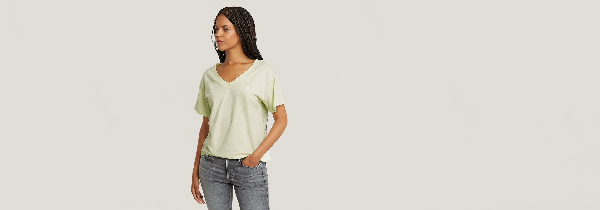 T-Shirt Open Relaxed offers a regular fit with a deep V-neck.