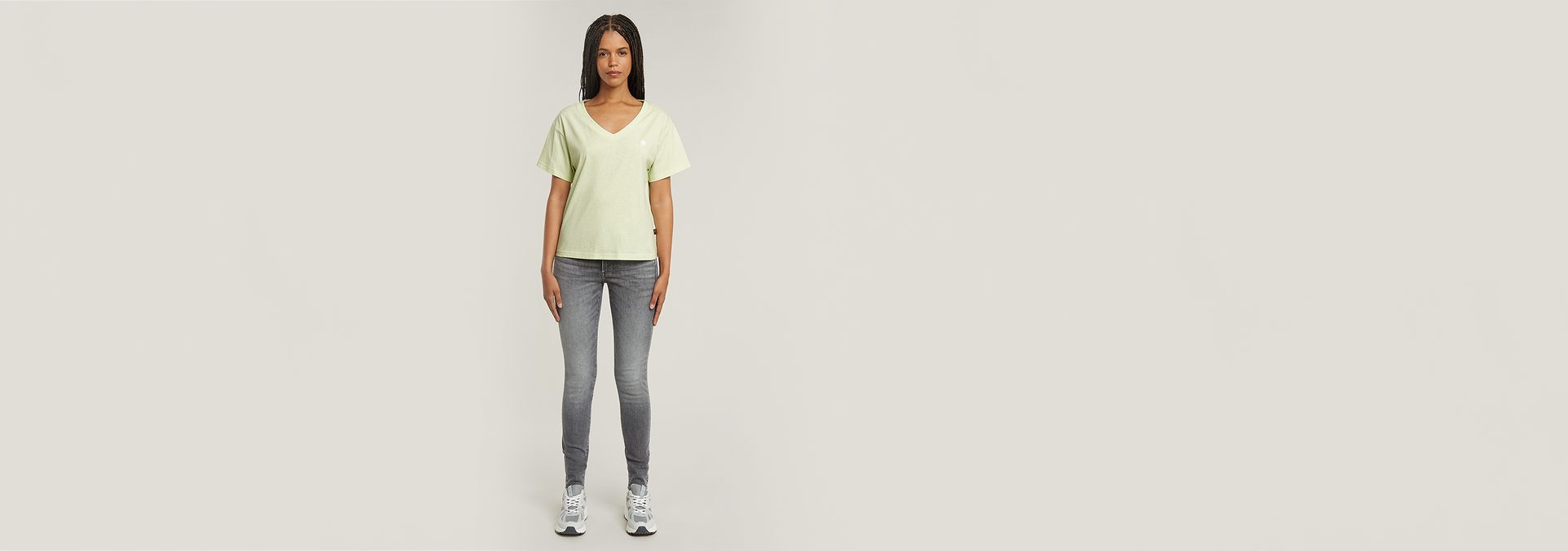 - Deep V-neck