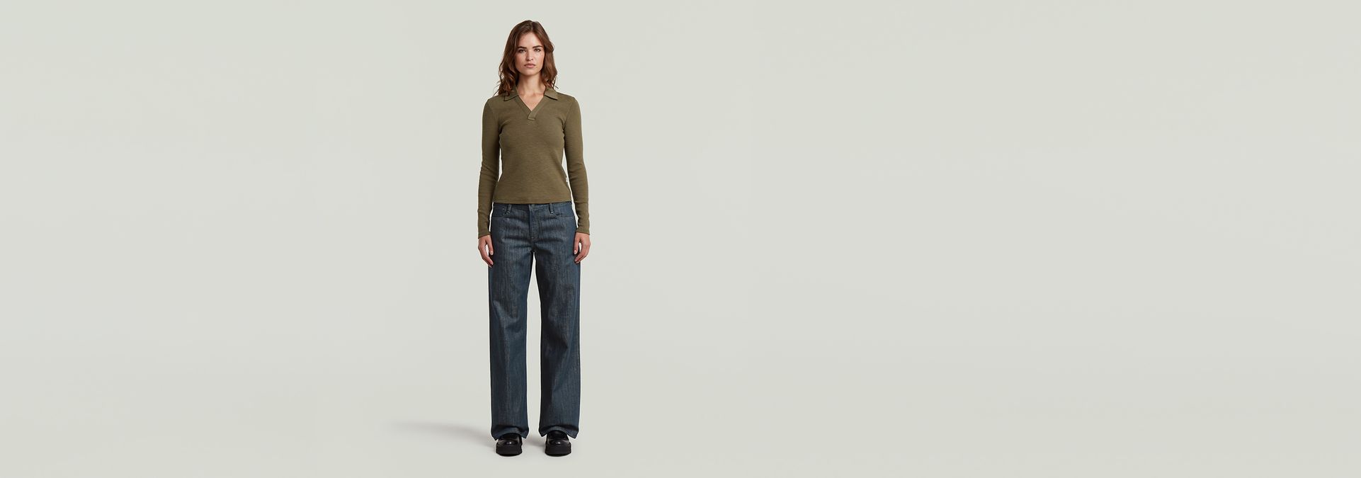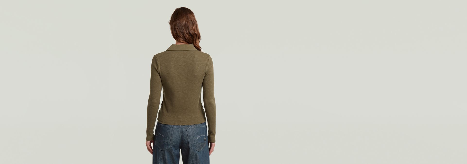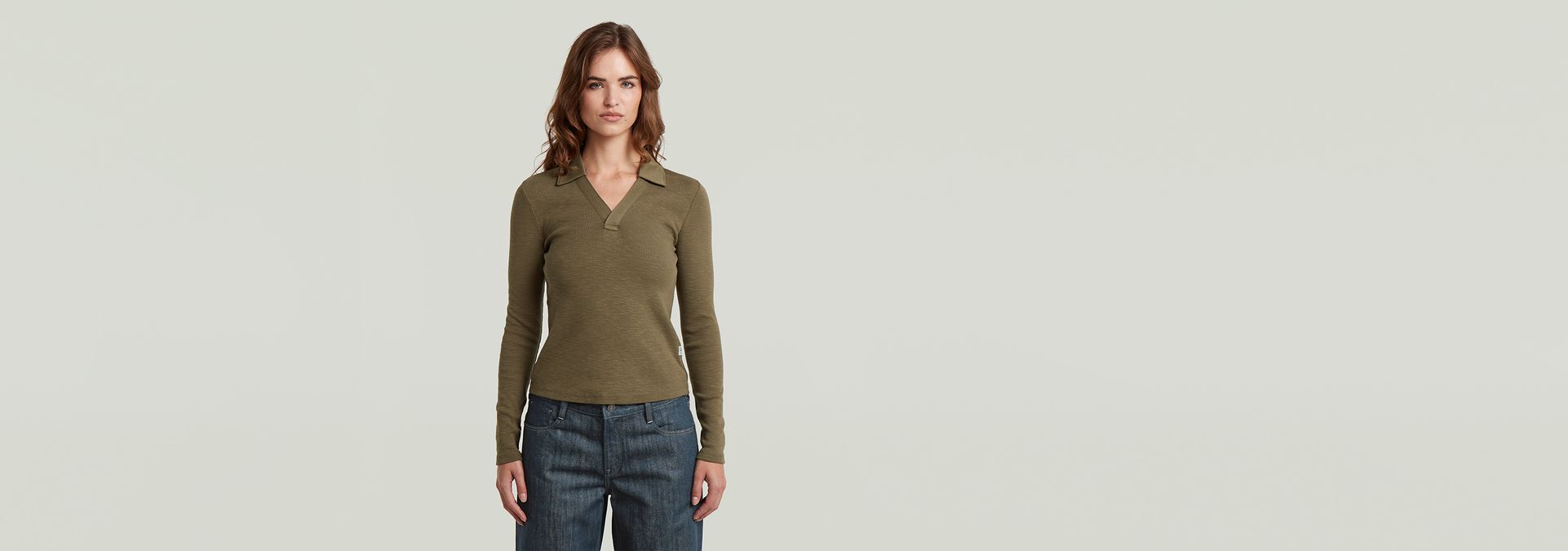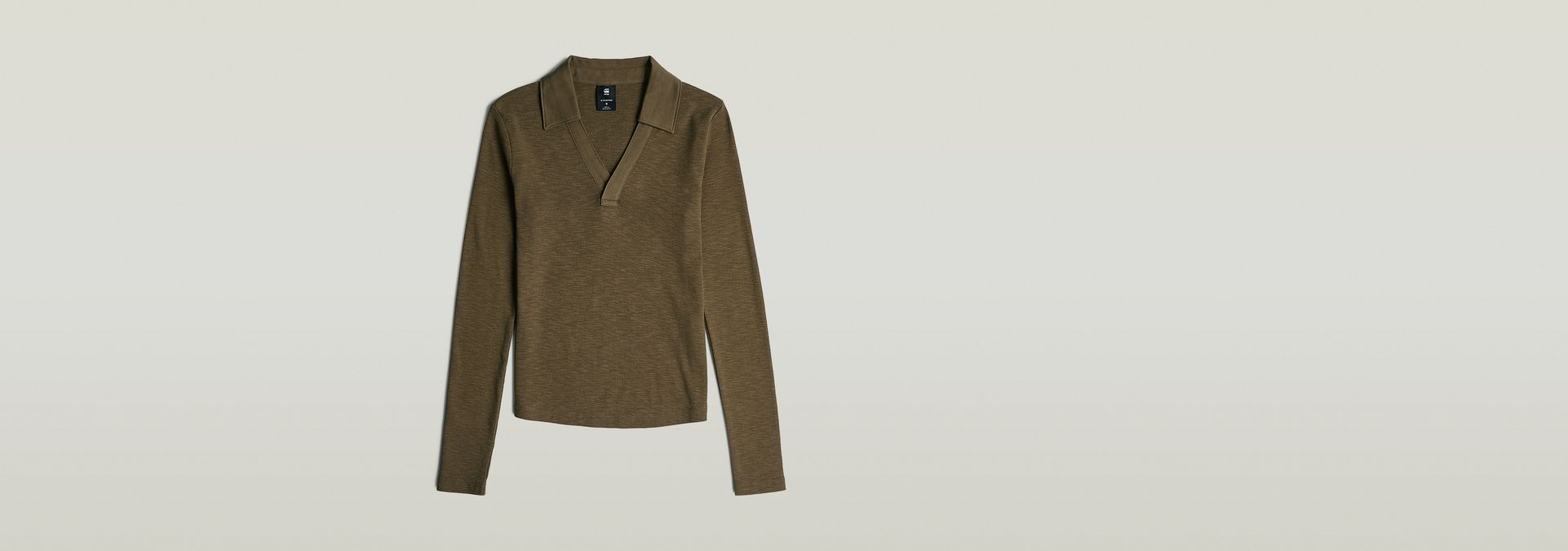 Polo Slim offers long sleeves and an open polo collar without buttons. Creating a wide V-neck.