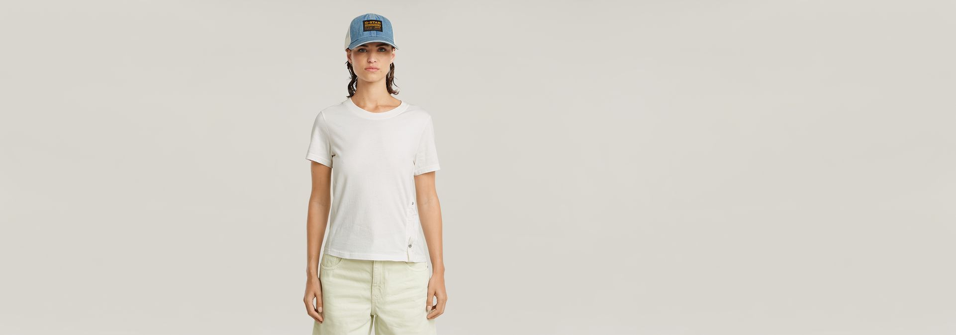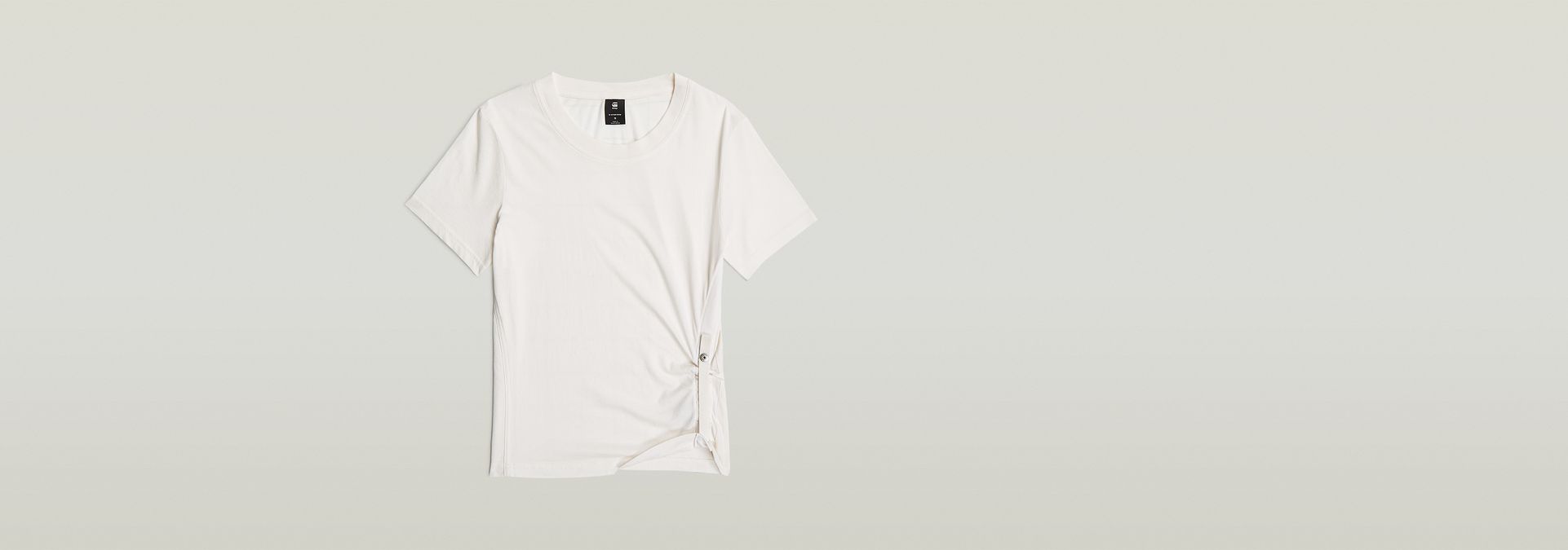 Short sleeve top Adjustable is designed in a slim fit and offers a regular length. By use of the woven strap at the waist, a pull-up can be created.