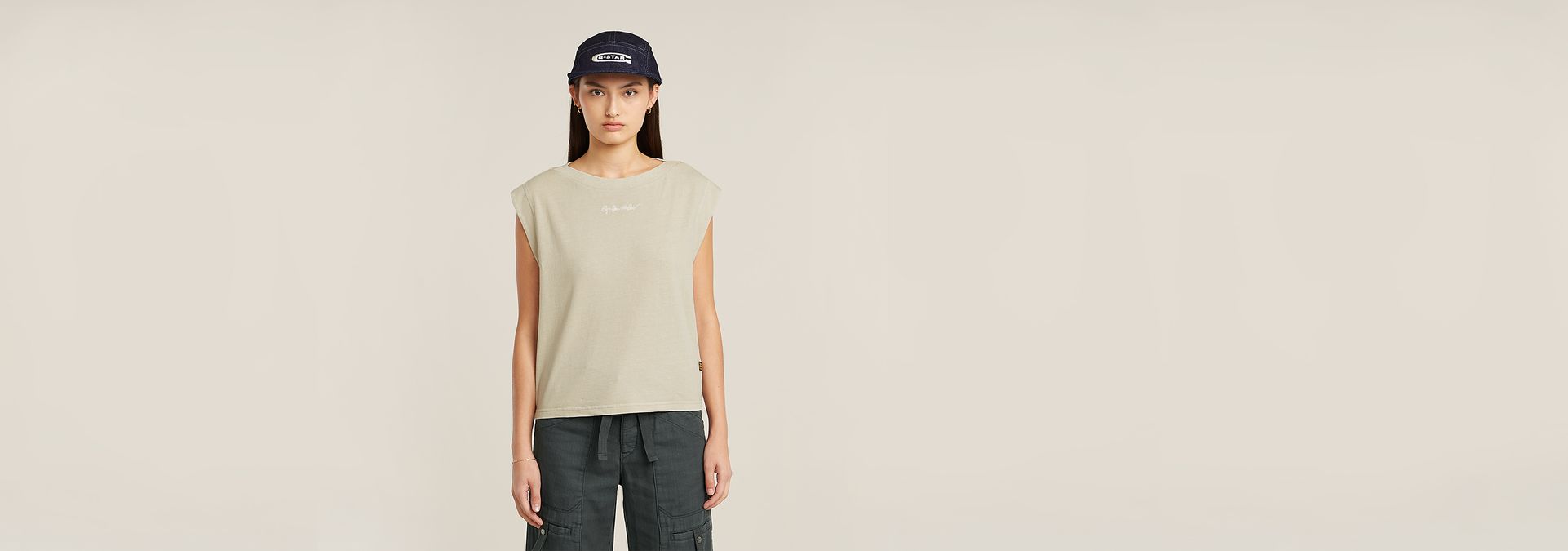 Top Mini G-Script Logo Overdyed is cut in a regular fit and offers widened shoulders. The armholes are cut deep and are partly covered by a gusset piece.