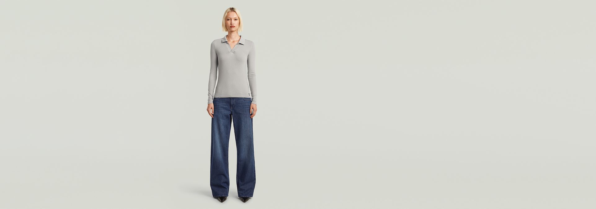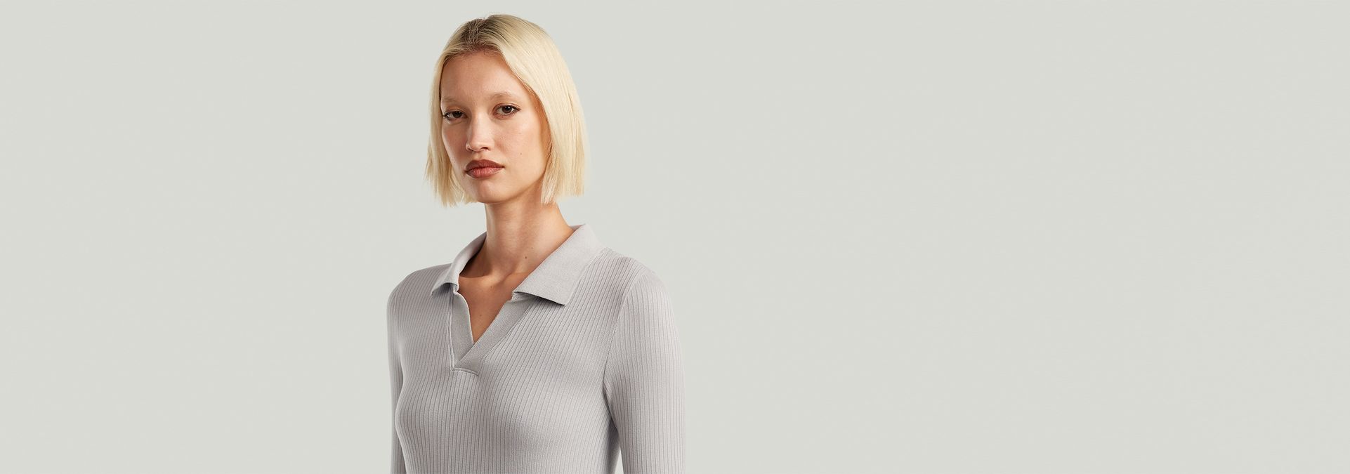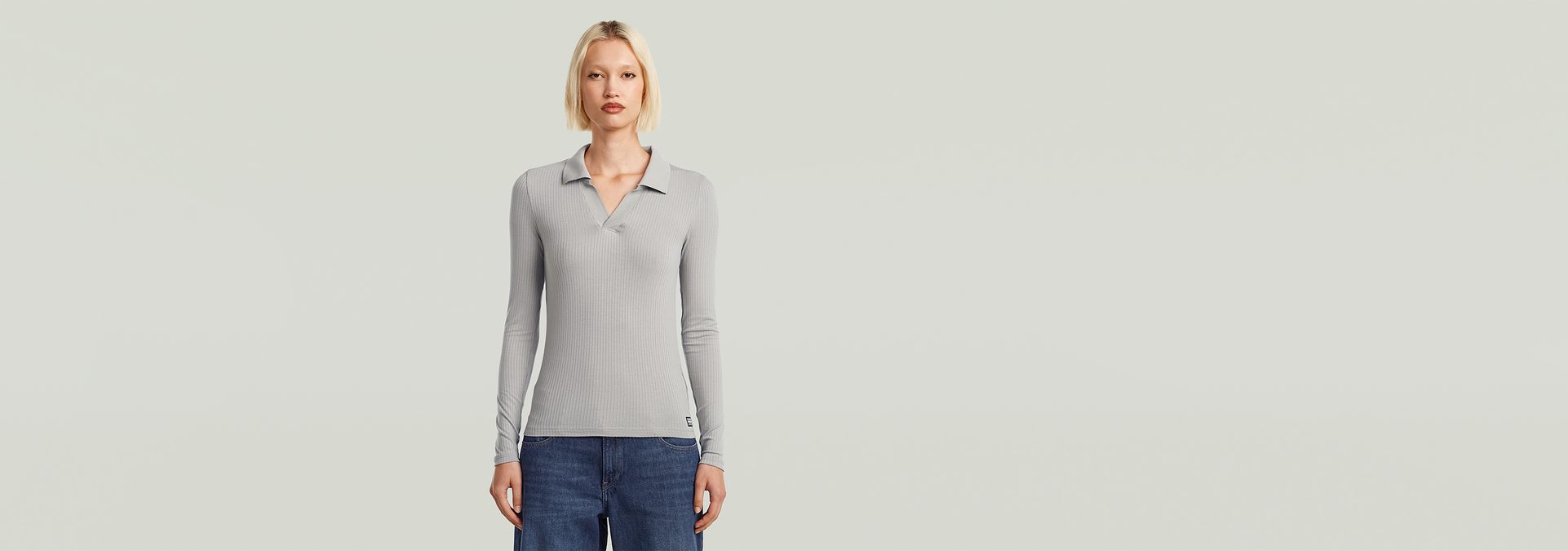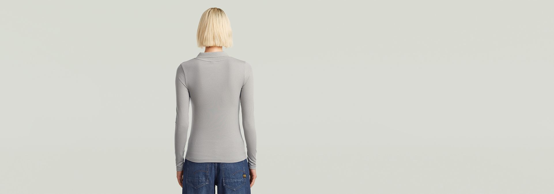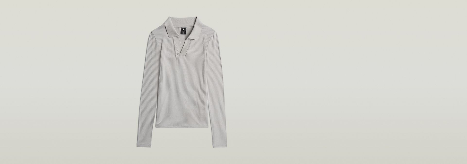The Ribbed Slim Polo offers a sleek fit with a V-neck, complemented by a classic shirt collar.