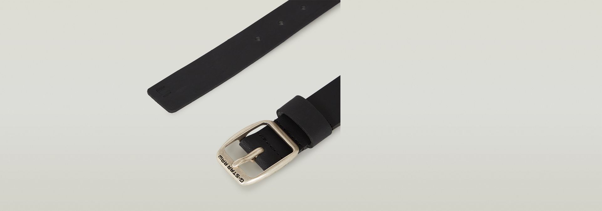 Belt Bryan features an antic cast-metal buckle with rounded edges.