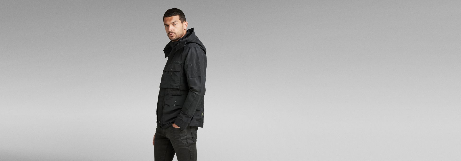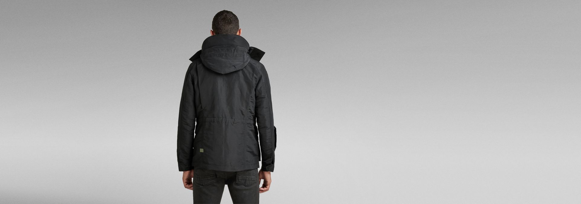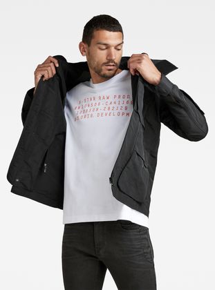 The design of this Multipocket field parka offers a detachable hood of which the peak can be folded backwards. The high raised collar keeps the wind out. A 'strike through' embroidery stitch indicates the pocket entrances of the front pockets. By pulling the drawcord at the inside, a tighter waist can be created. Also the cuffs can be adjusted by the added snap. Along both sleeves, pockets are created including a pen pocket at the bicep.