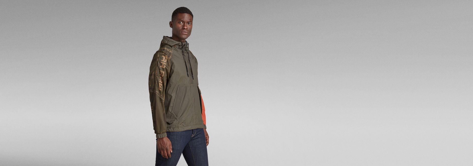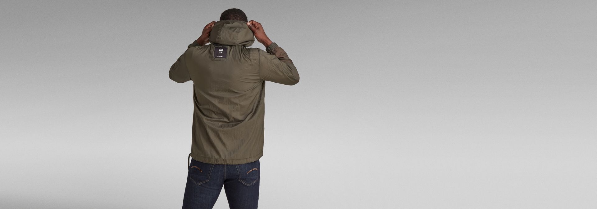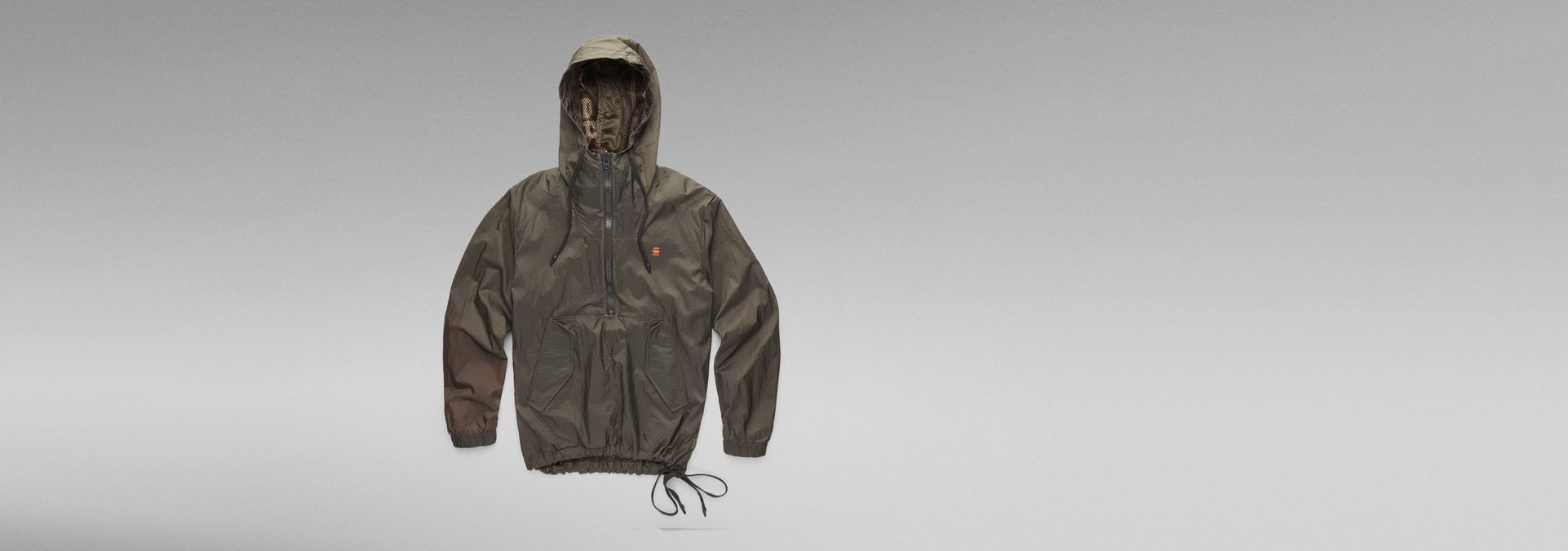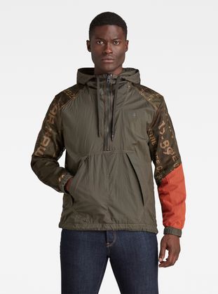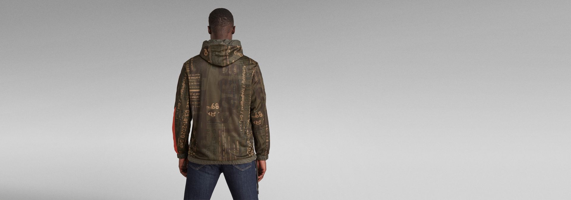 Anorak Reversible offers a graphic printed mesh on the outer and a woven ripstop aesthetic on the inside. A raised front is combined with a lined hood, offering tipped drawstrings. Also the bottom hem shows a drawstring for adjustability. This anorak has shaped sleeves with an elasticated edge. Both sides of this anorak offer a split kangaroo pocket. One side shows open entry pockets, while the other side has a flap and snap closure. A zipper closure allows for an easy entrance of this reversible piece.
