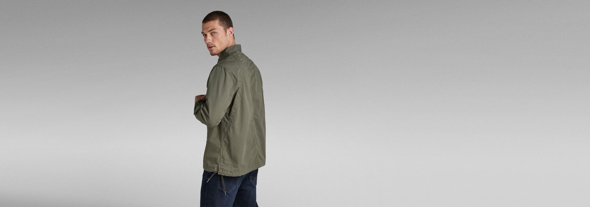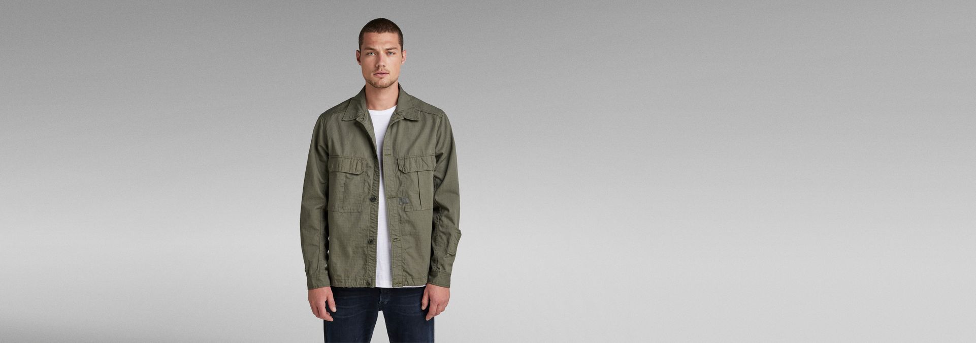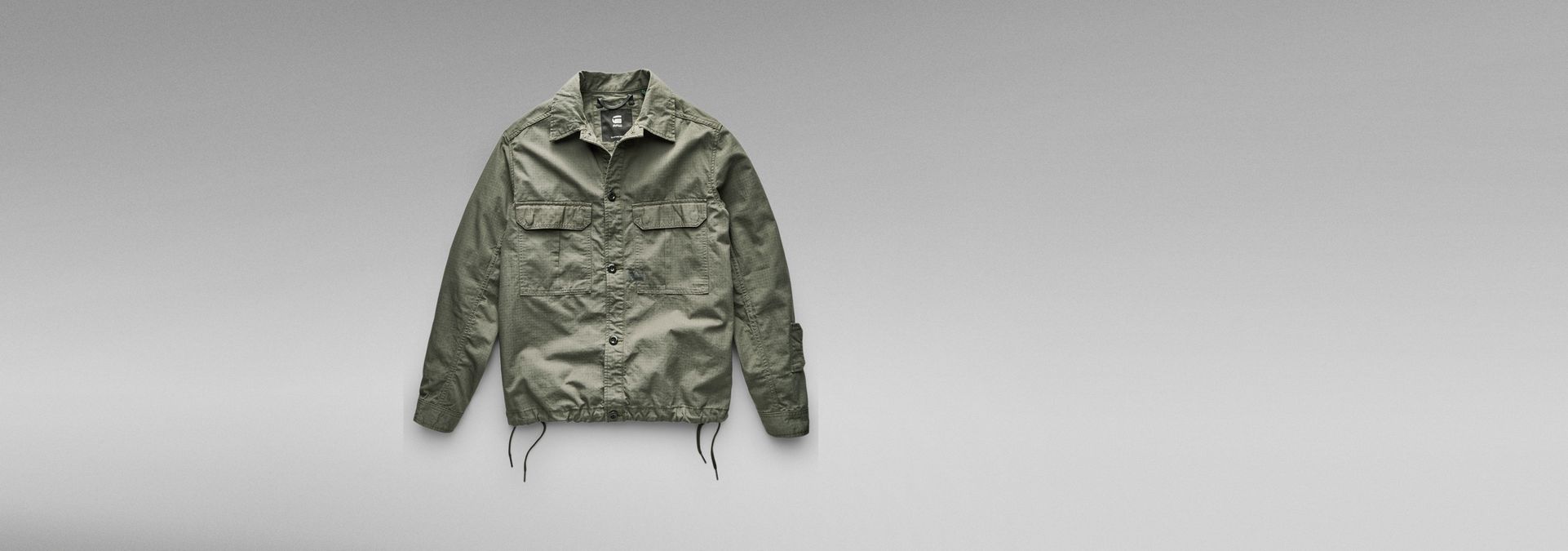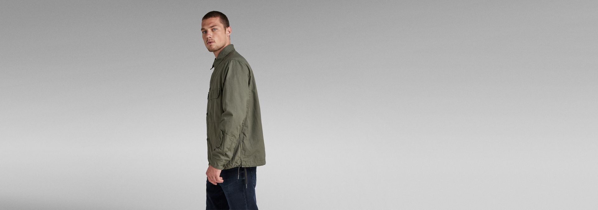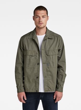 This relaxed overshirt is cut in a straight fit. By pulling the drawcords at the bottom edge, a tighter fit can be created. Deep cargo pockets are set at the chest and have a hidden snap closure. A smaller version is placed at the wrist. This shirt shows a button front closure. A hanger loop is added to the inside neck for ease.