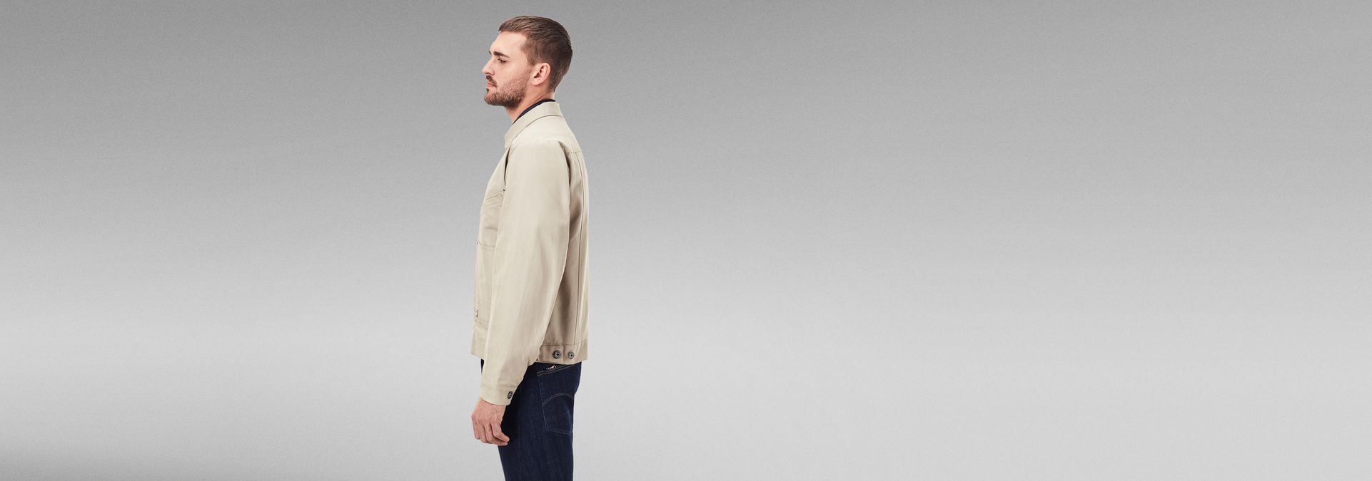 The Trucker jacket is fully lined and shows a zipper closure. Waist pockets are designed with additional pockets within, where rivets reinforce the pocket corners. A hidden snap is added to the welt pocket. Double shank buttons create adjustability at the back side of the waist and cuffs. An additional pocket with snap and a hanger loop are added to the lined inside.